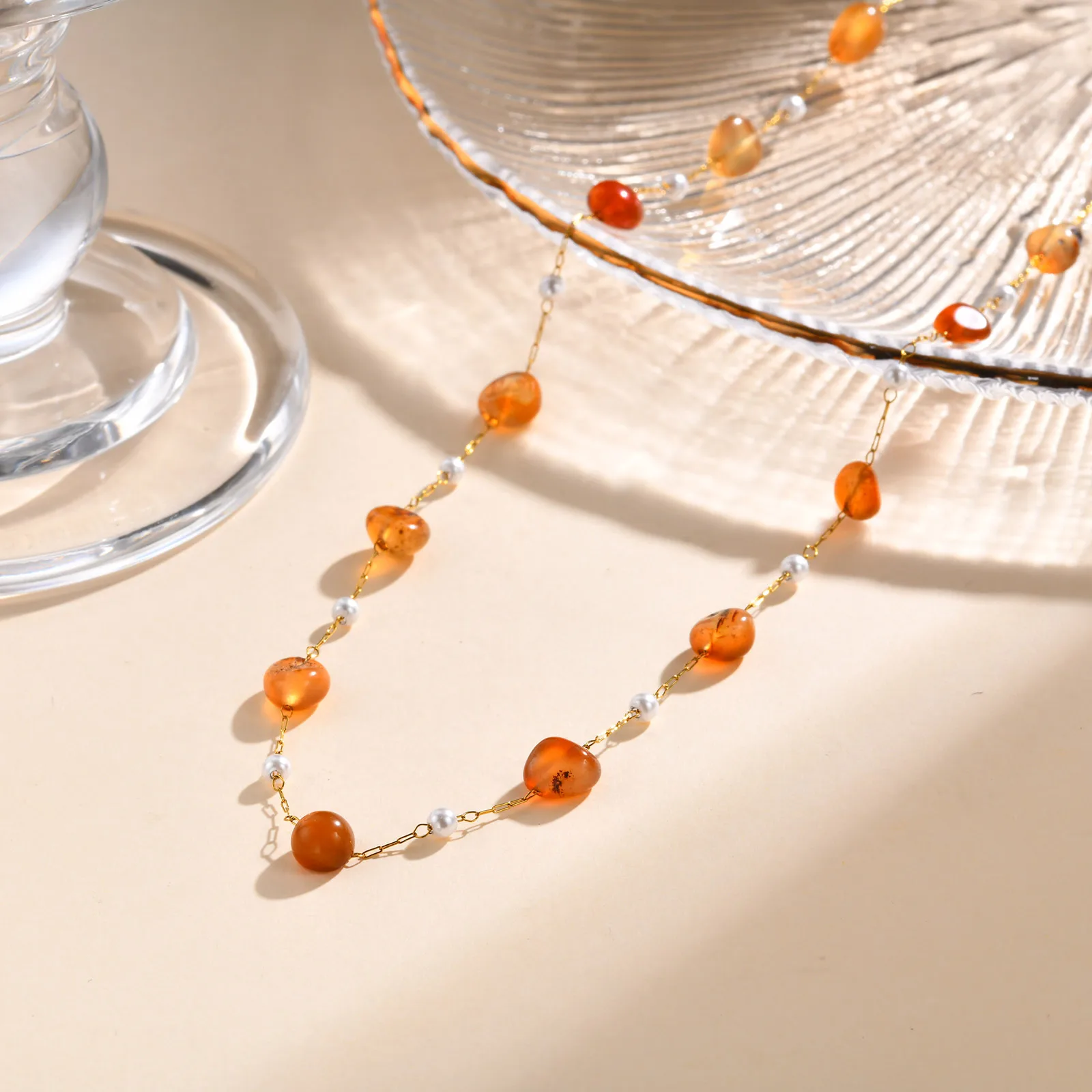 Fleepmart Boho Necklace Beach Irregular Natural Stone Necklaces for Women Stainless Steel Imitation Pearl Jade Necklace Jewelry Gift