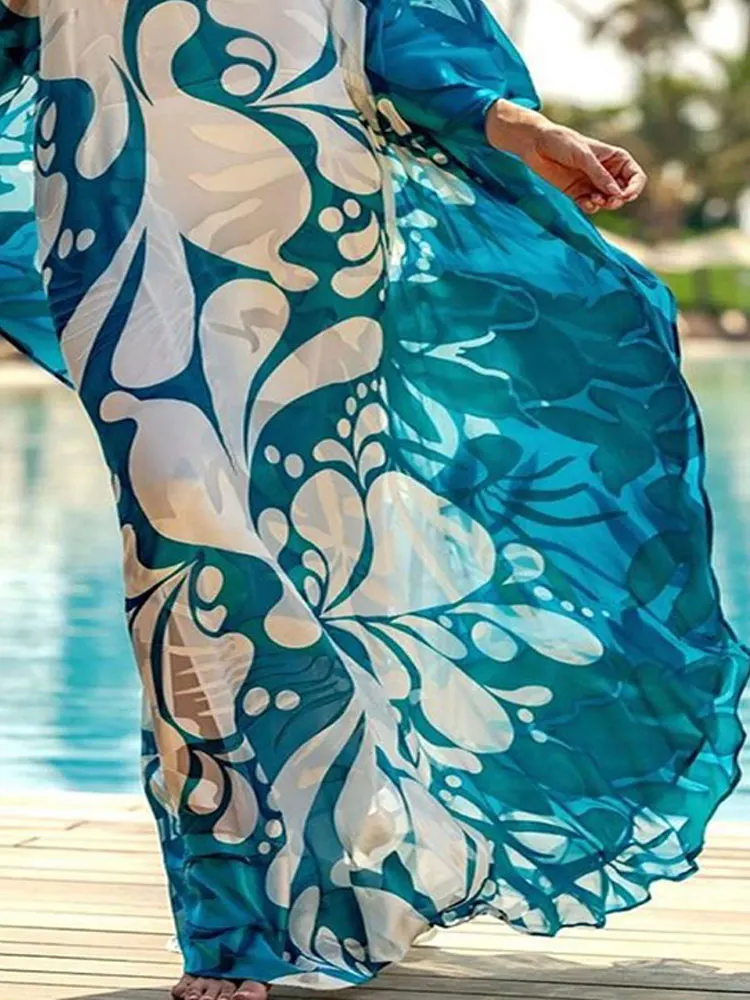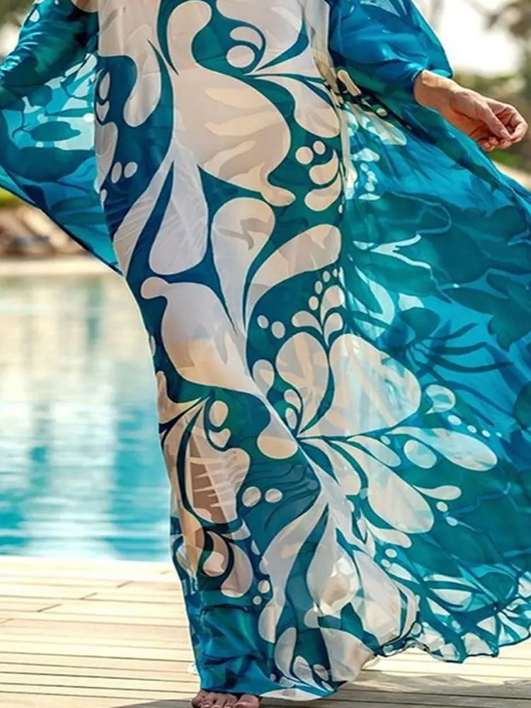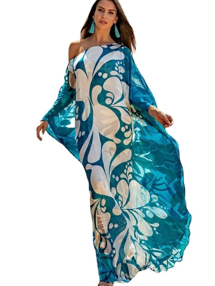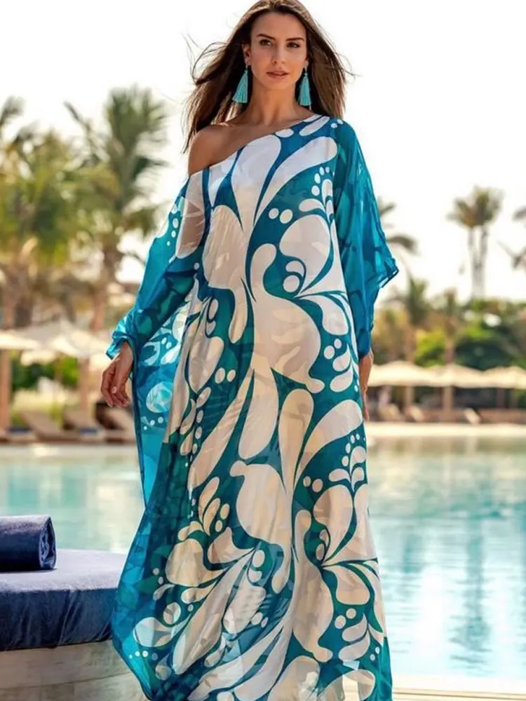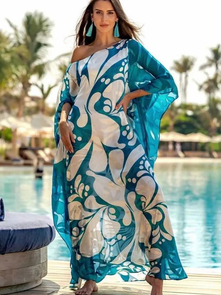 Fleepmart Boho Printed Off Shoulder Kaftan Plus Size Women Clothes 2023 Summer Sexy Beach Wear Tunic Casual High Street Dresses