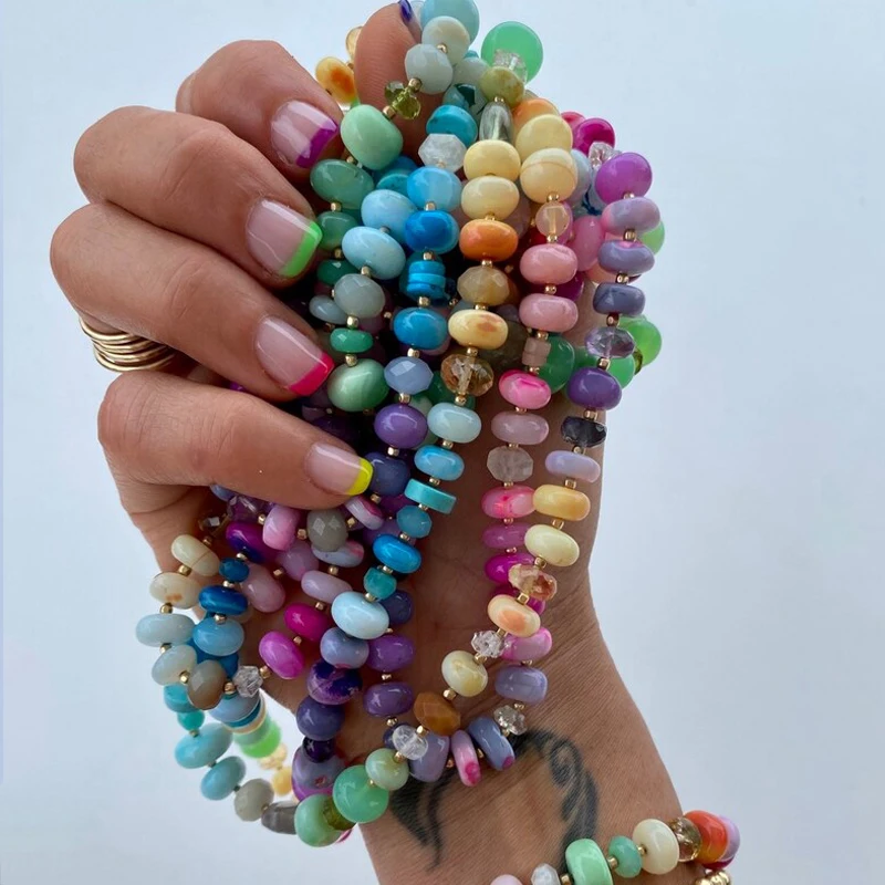 Fleepmart boho summer beach Various Beads Multi-Colors Sarafina The Neutral Collection gemstone Agate opal Open Loop Necklace wholesale