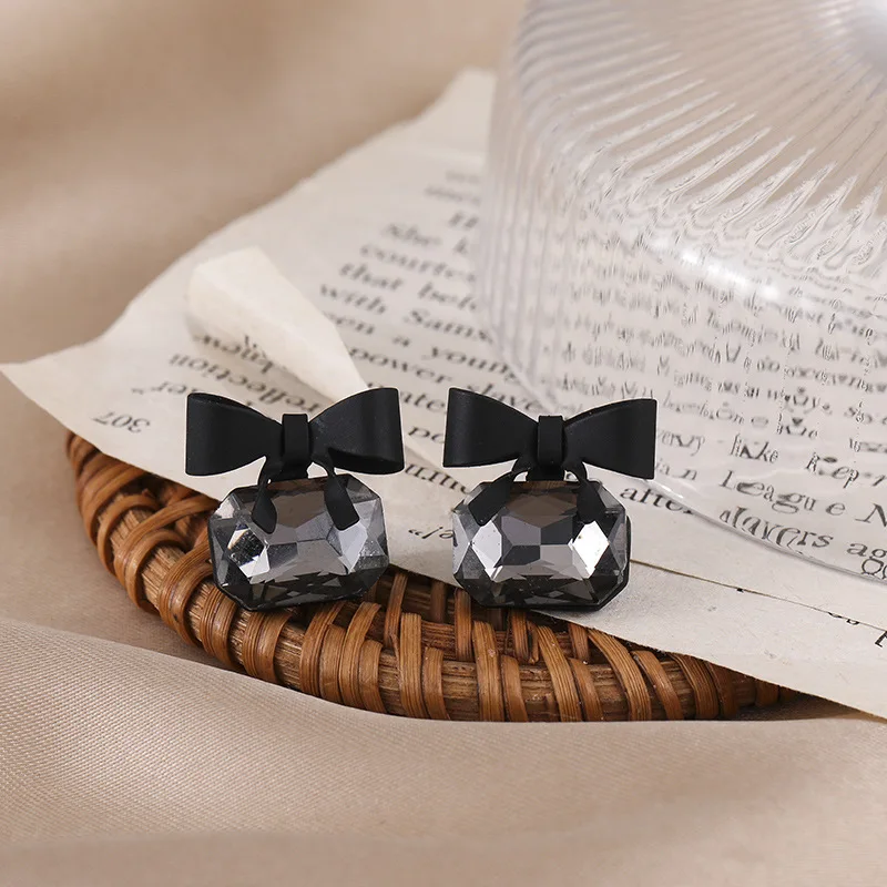 Fleepmart Bowknot Cube Crystal Square Bow Women 2025 New Jewelry Fashion Pretty Gifts Earrings