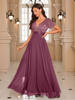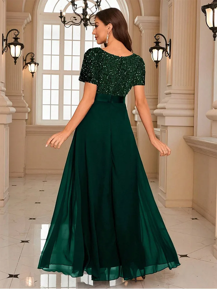 Fleepmart Short sleeve V-neck luxury chiffon floor-length sparkling sparkling bridesmaid evening dress