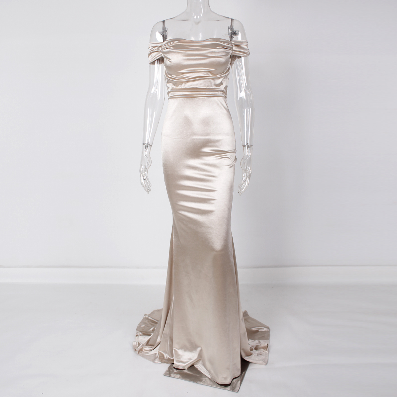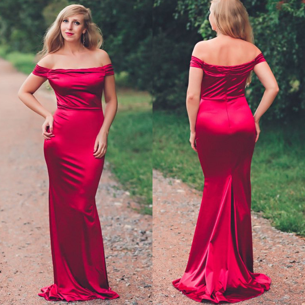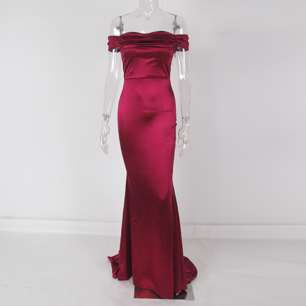Fleepmart Burgundy Off the Shoulder Maxi Dress Evening Party Long Stretch Satin Slash Neck Elegant Floor Length Gown