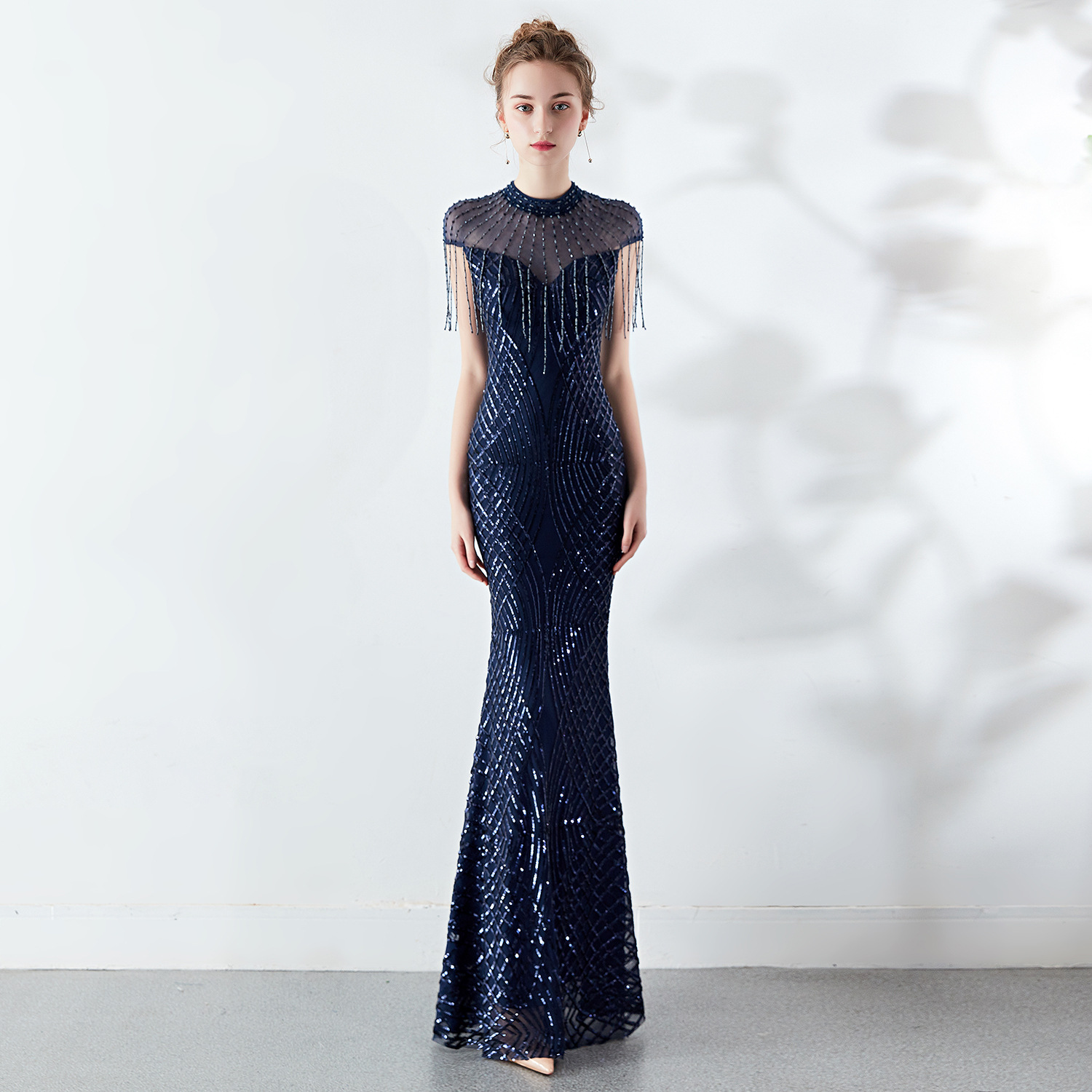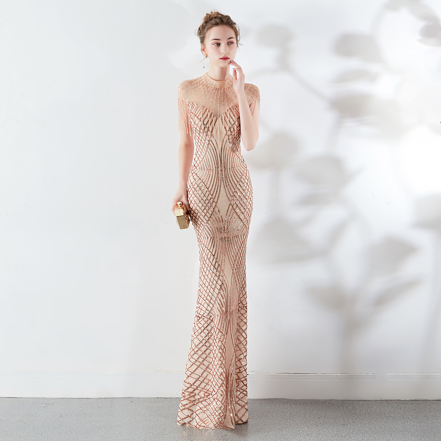 Fleepmart Burgundy Sequin Evening Dress Elegant Beading Long Party Dress