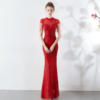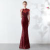 Fleepmart Burgundy Sequin Evening Dress Elegant Beading Long Party Dress