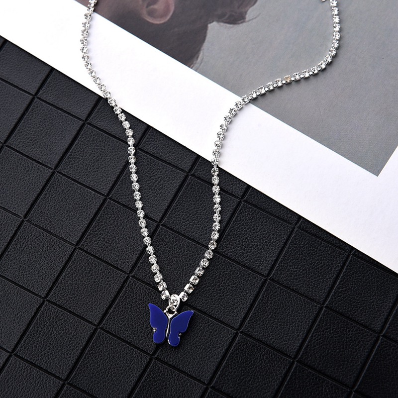 Fleepmart Butterfly Choker Necklace Rhinestone Chain White Black Color Simple Clavicle Necklace Animal Korean Jewelry