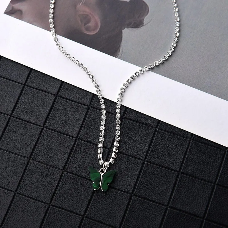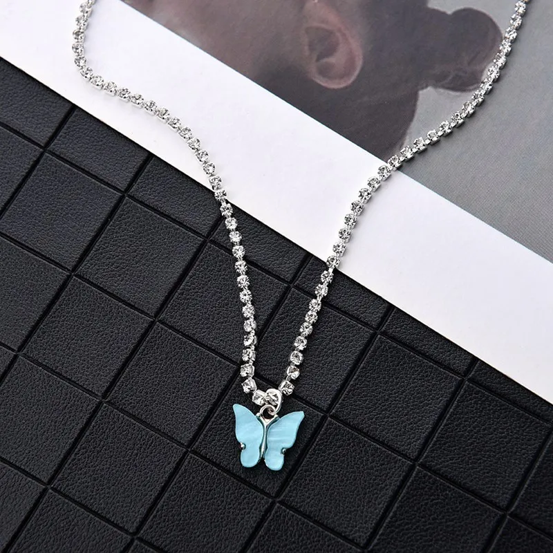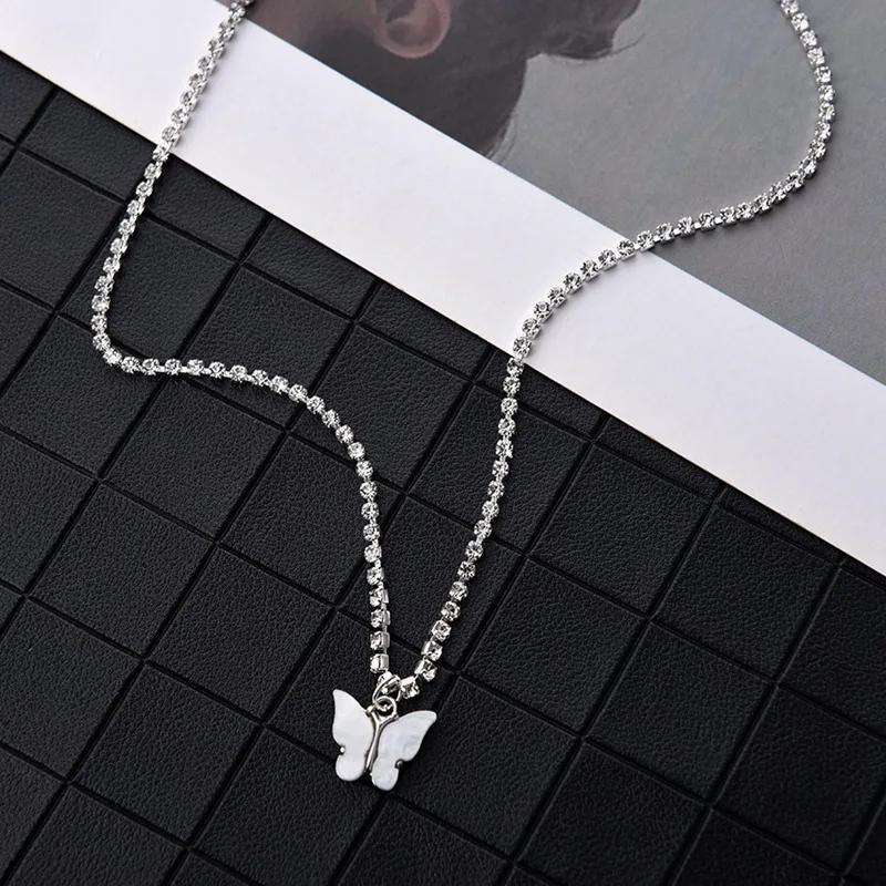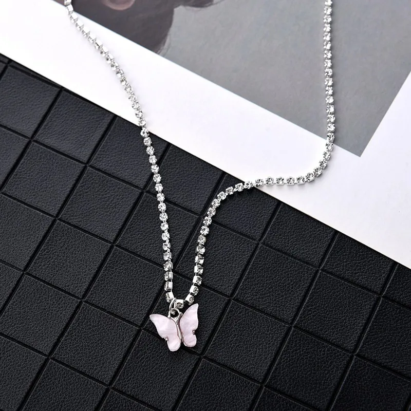 Fleepmart Butterfly Choker Necklace Rhinestone Chain White Black Color Simple Clavicle Necklace Animal Korean Jewelry