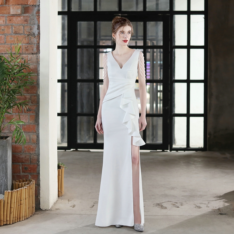 Fleepmart Candy Color Sexy Slit Party Maxi Dress Women Long Prom Dress Pink Soft Satin V Neck Beading Evening Dress
