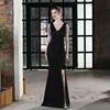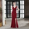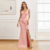 Fleepmart Candy Color Sexy Slit Party Maxi Dress Women Long Prom Dress Pink Soft Satin V Neck Beading Evening Dress