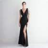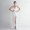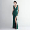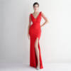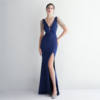Fleepmart Candy Color Women Beading Party Maxi Dress Navy Soft Satin Sexy V Neck Evening Dress Long Bridesmaid Drress