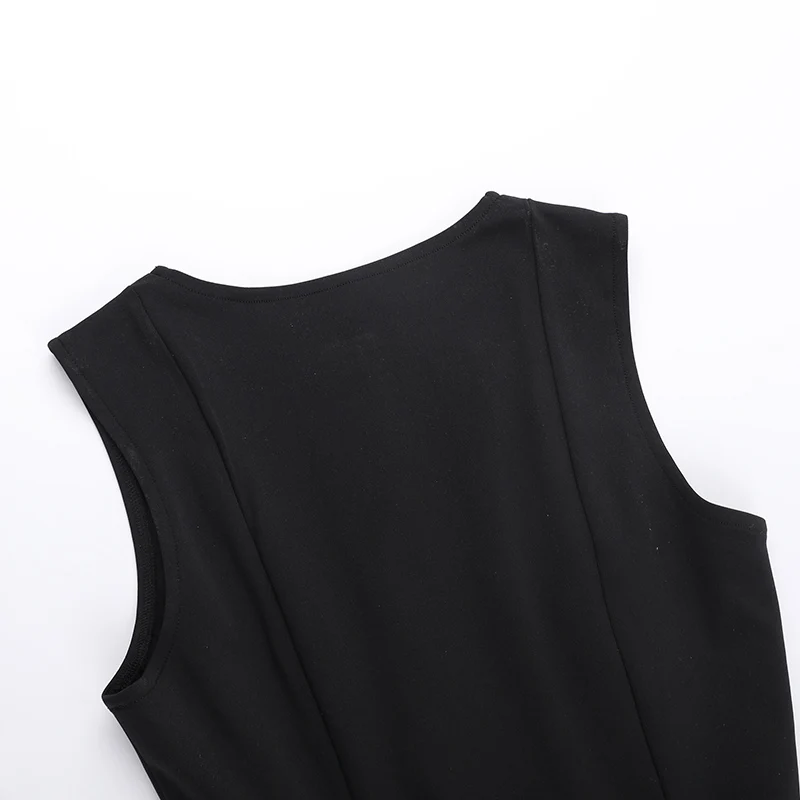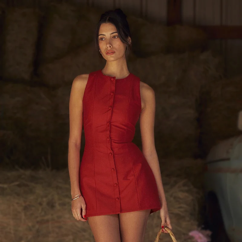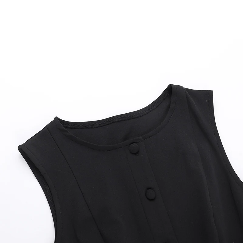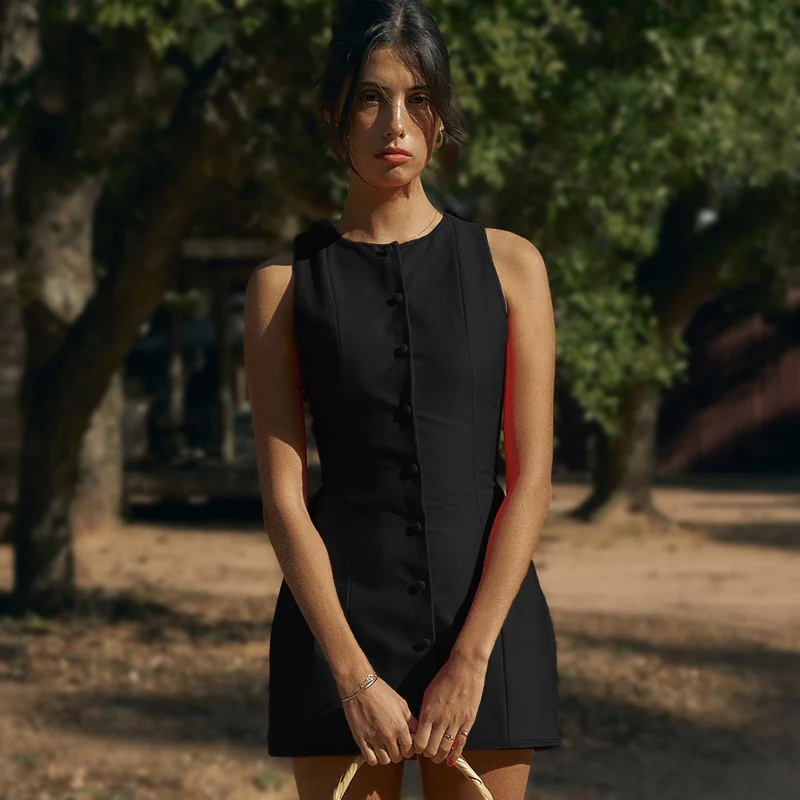 Fleepmart Casual Basic Tank Dress For Women Button Sleeveless Fashion Summer Backless Mini Dresses Elastics Bodycon Dress