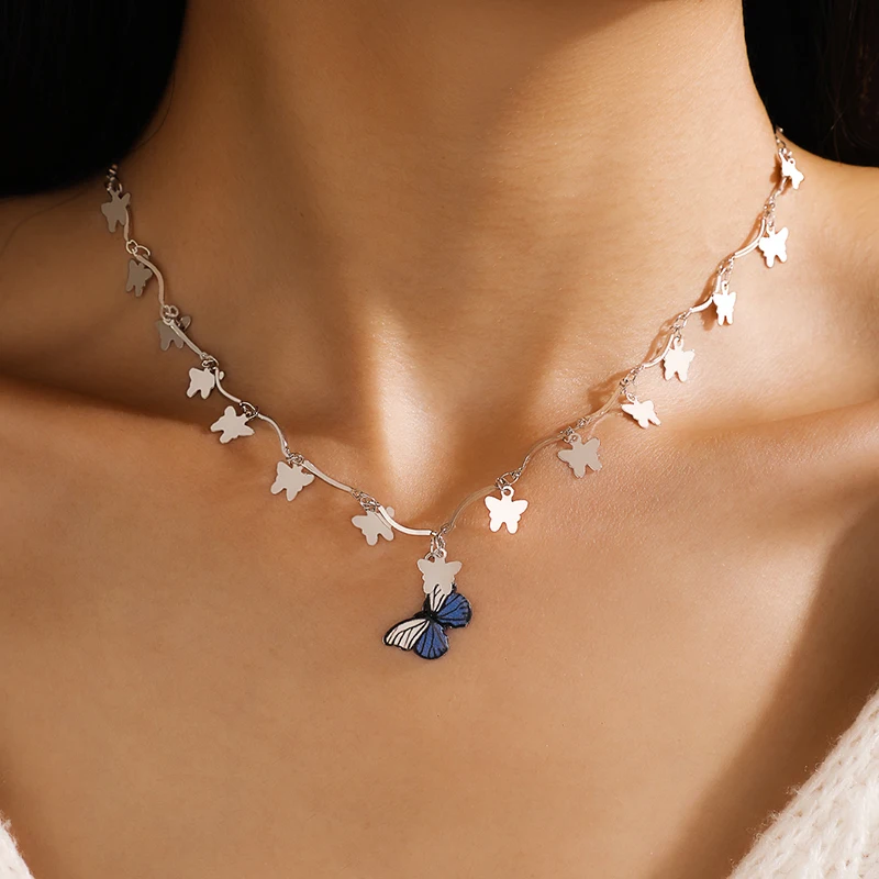 Fleepmart Charming Butterfly Pendant Necklace for Women Tassel Sweater Chain Silver Color Alloy Metal Adjustable Jewelry