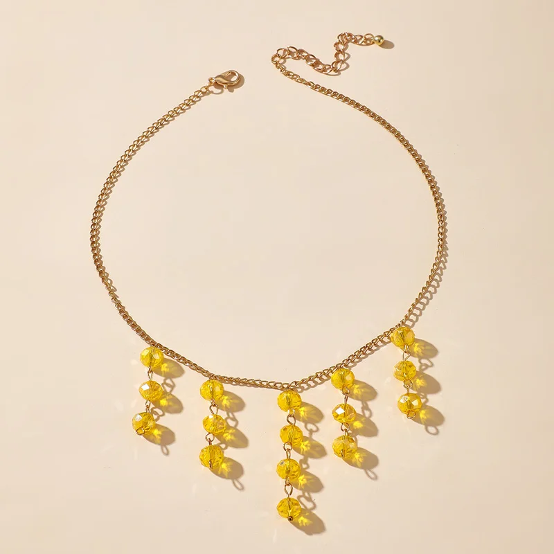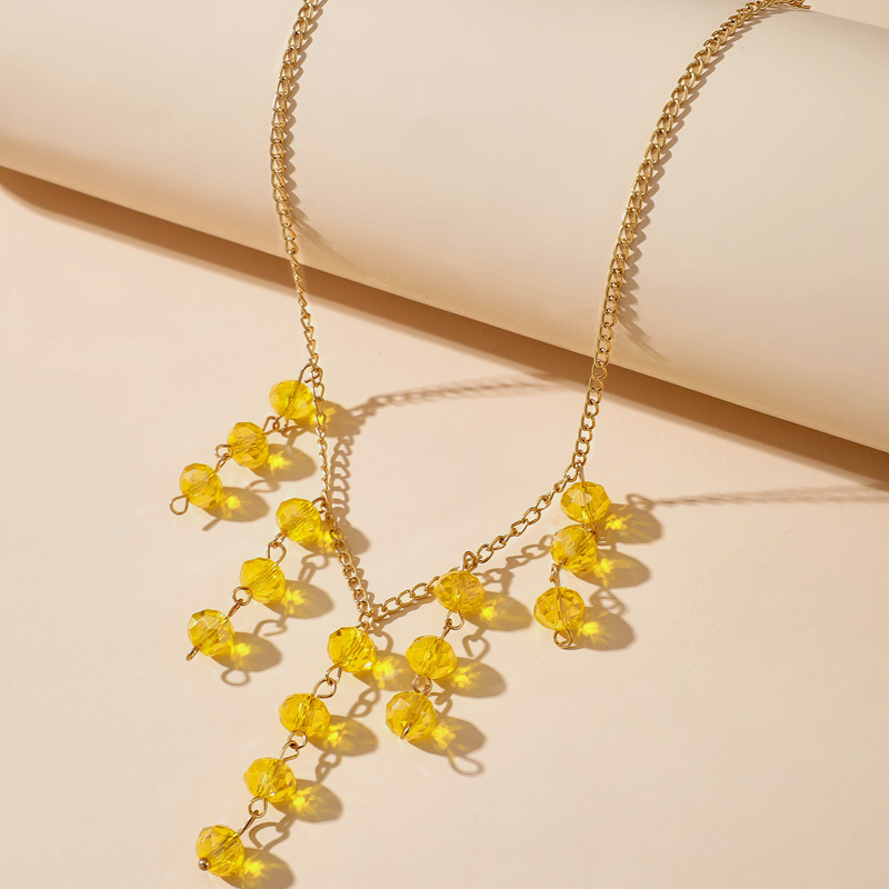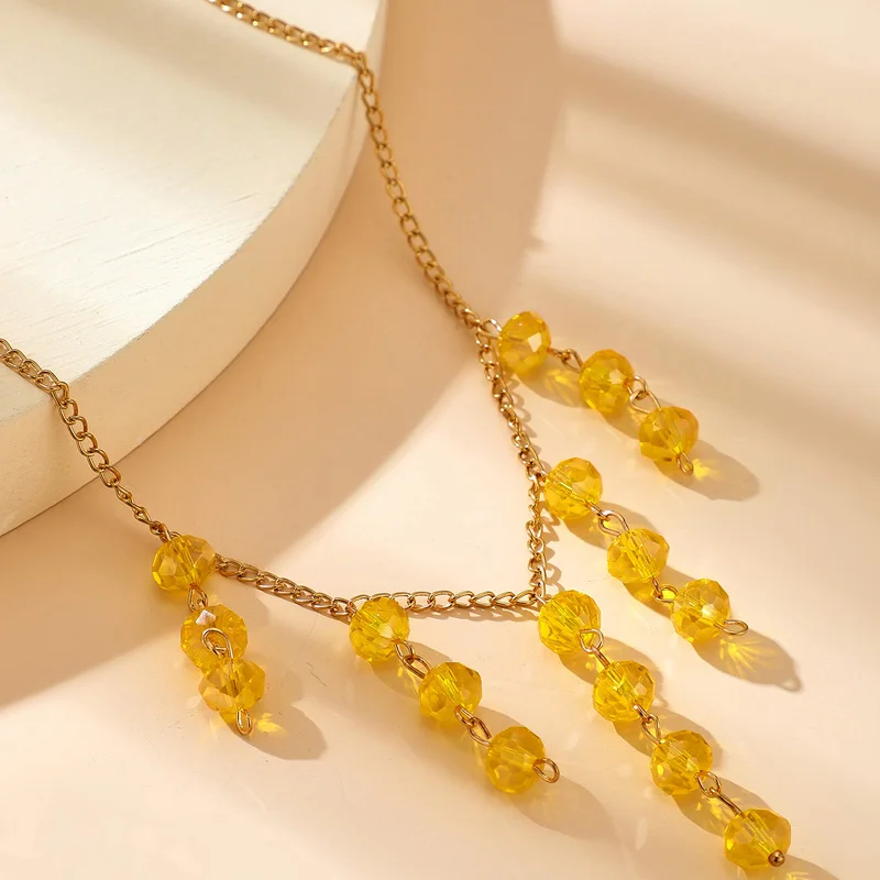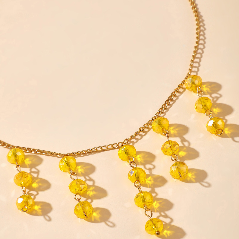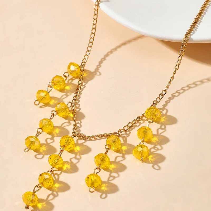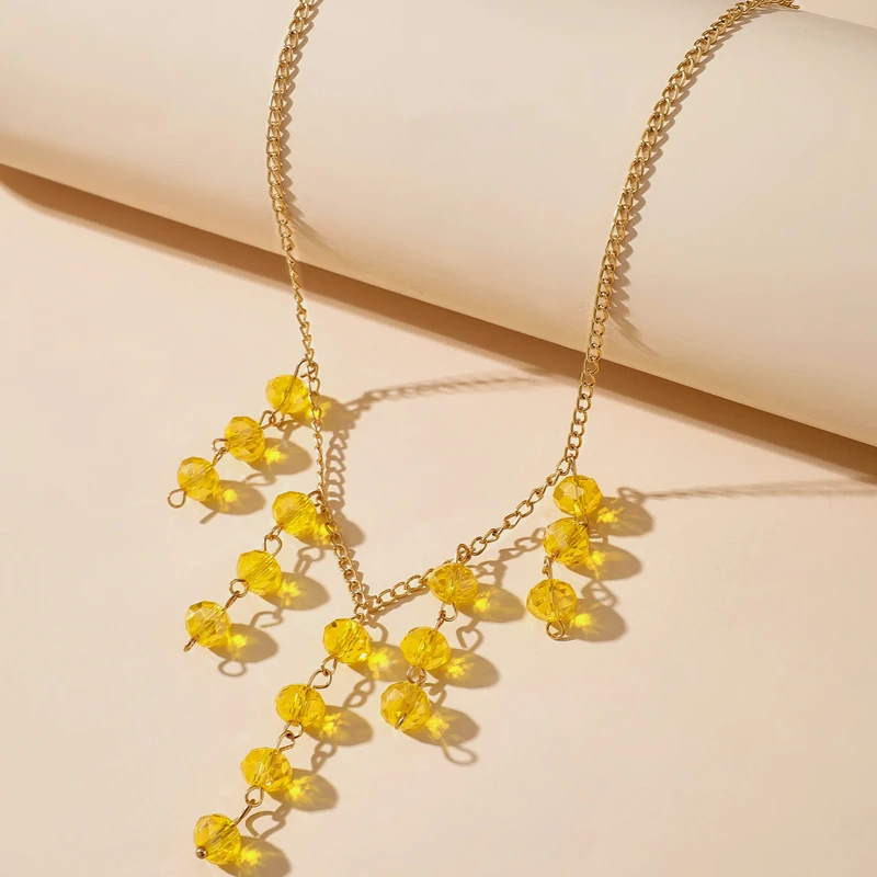 Fleepmart Charming Yellow Bead Long Chian Pendant Necklace for Women Gold Color Alloly Metal Party Jewelry Gift