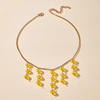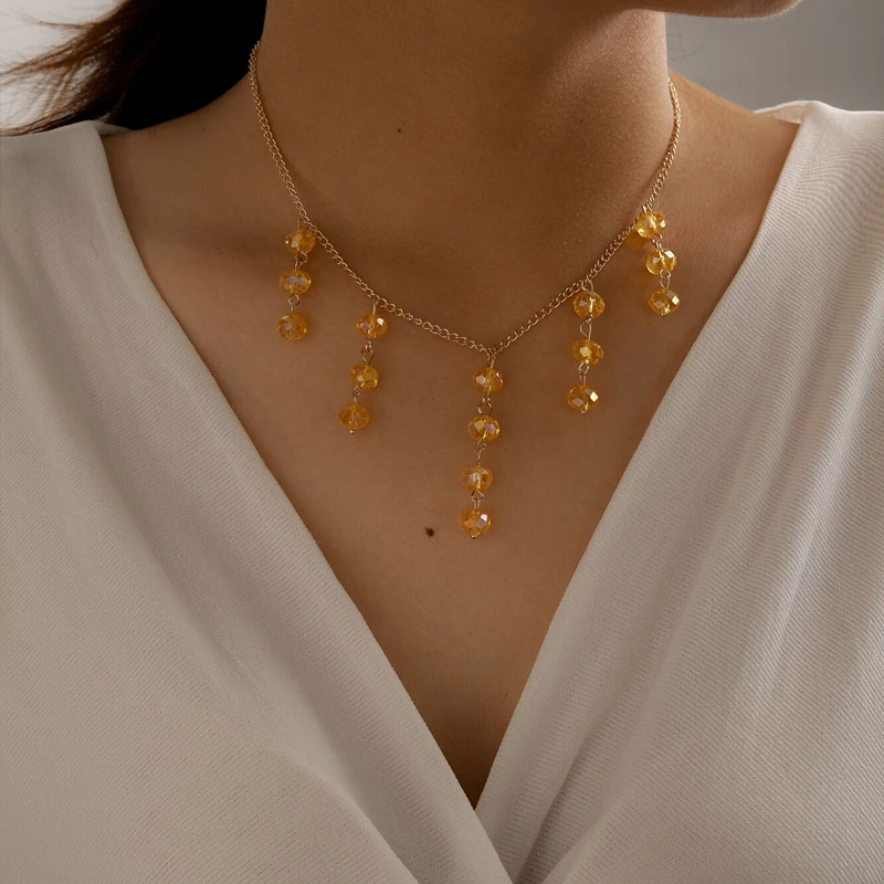 Fleepmart Charming Yellow Bead Long Chian Pendant Necklace for Women Gold Color Alloly Metal Party Jewelry Gift