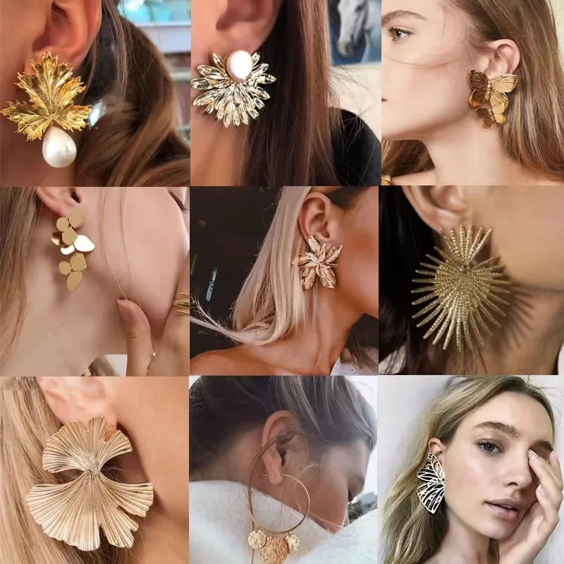 Fleepmart Charms Big Flowers Statement Earrings for Women Butterfly Pearl Stone Leaf Geometric Cute Earrings Jewelry PendienteFleepmart Charms Big Flowers Statement Earrings for Women Butterfly Pearl Stone Leaf Geometric Cute Earrings Jewelry Pendiente