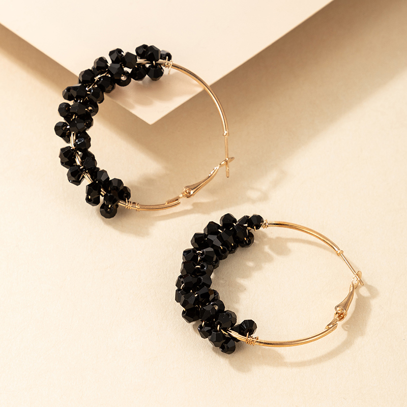 Fleepmart Charms Black Crystal Stone Drop Earrings for Women Geometry Alloy Metal Gold Color Earring Bohemian Jewelry