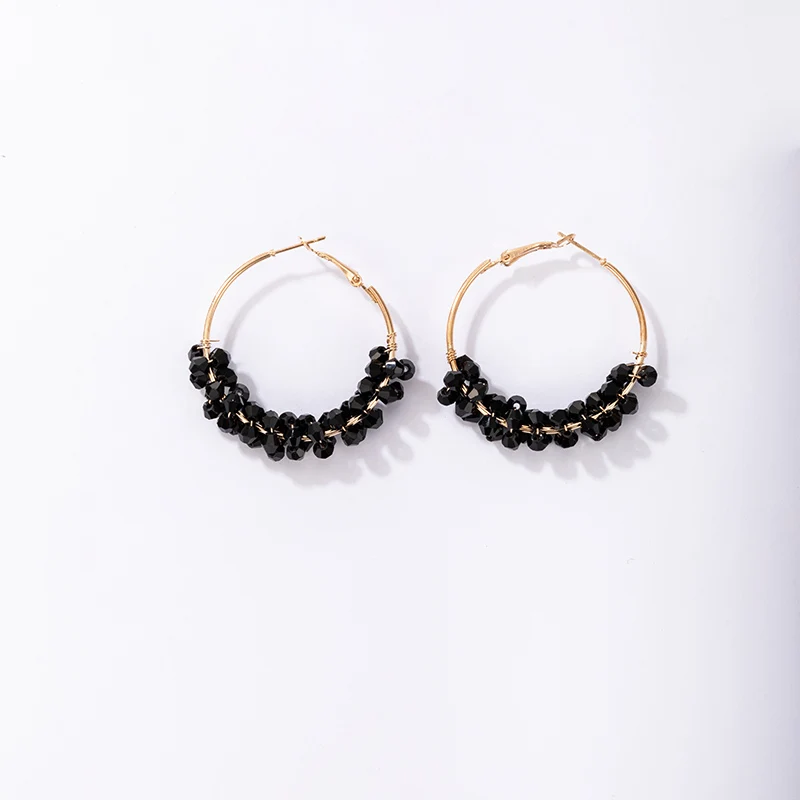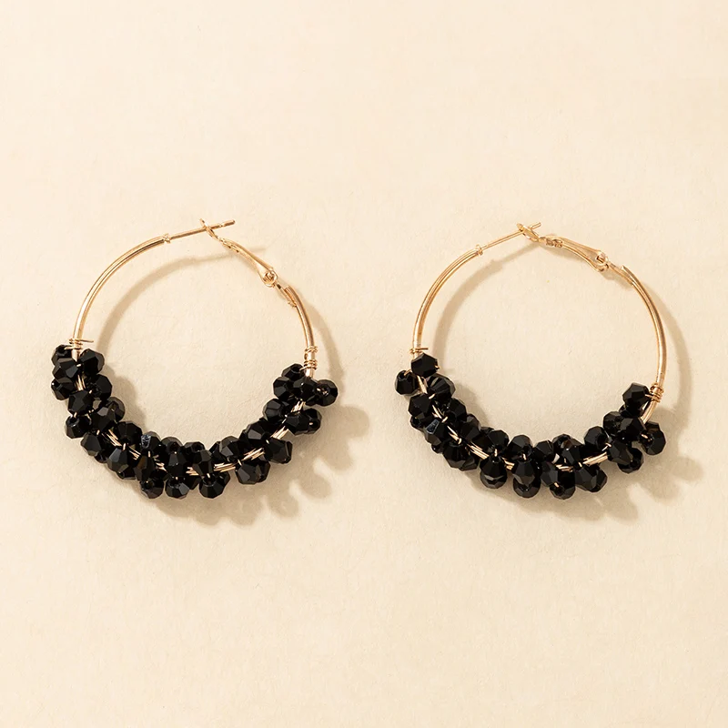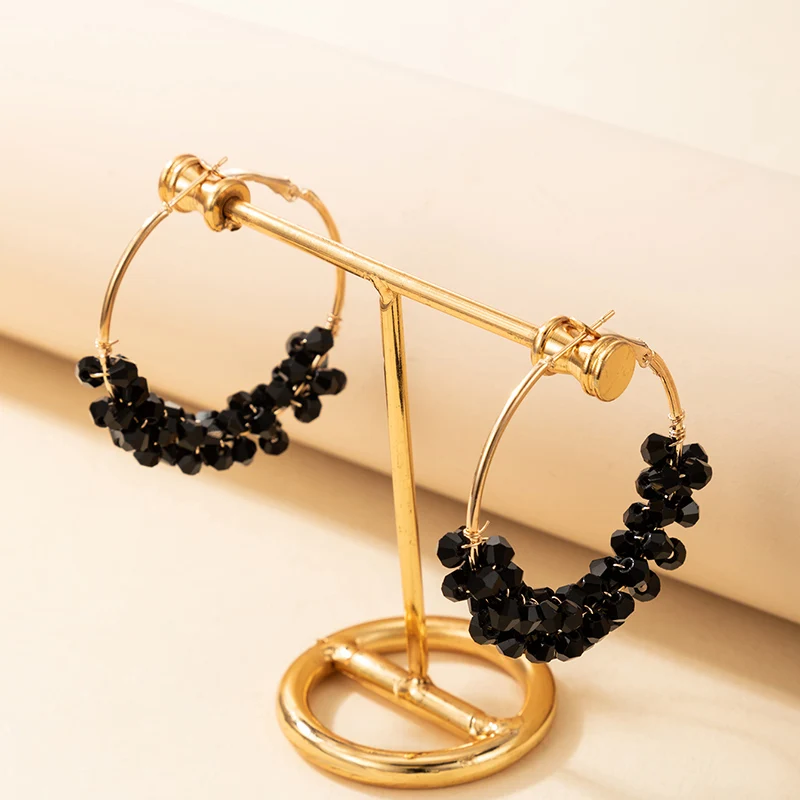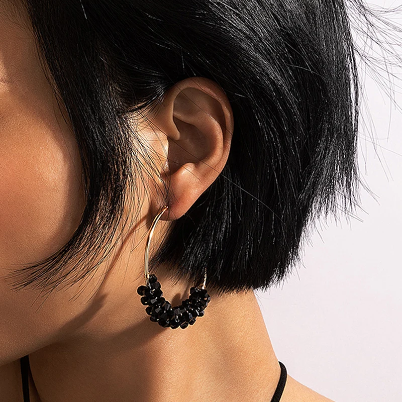 Fleepmart Charms Black Crystal Stone Drop Earrings for Women Geometry Alloy Metal Gold Color Earring Bohemian Jewelry
