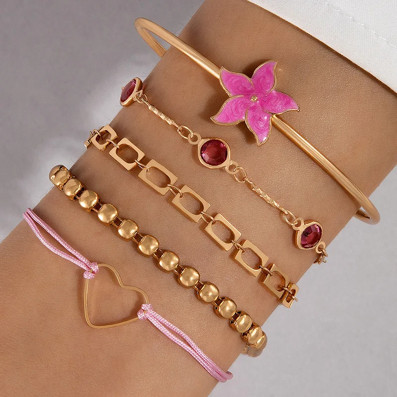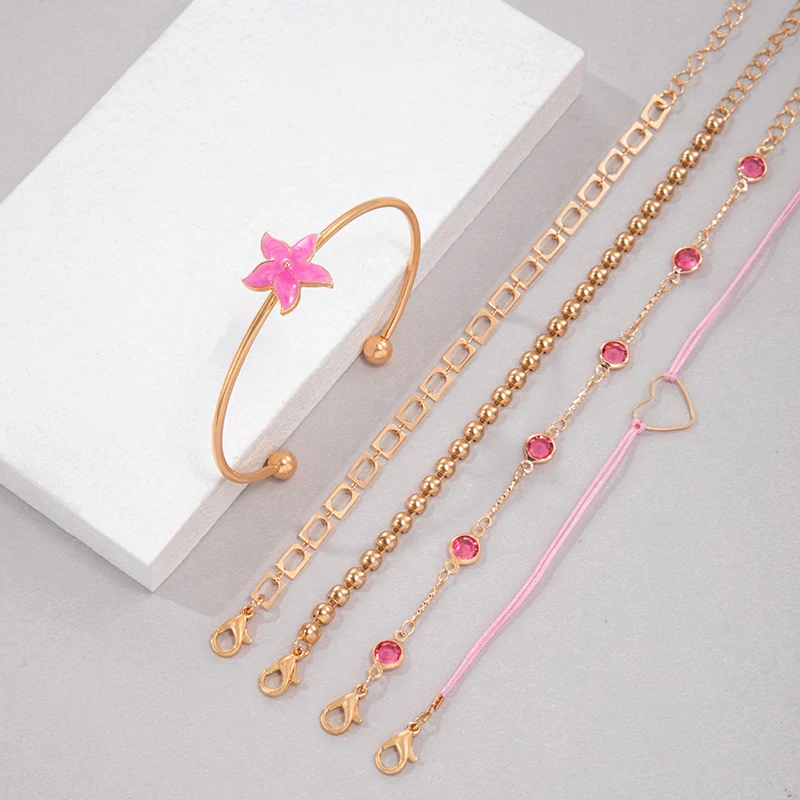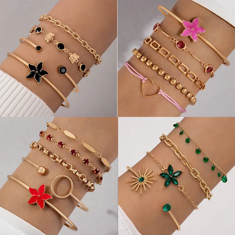 Fleepmart Charms Colorful Flower Multilayered Open Bracelet for Women Alloy Dropping Oil Beads Bangle 4pcs/Set Wedding JewelryFleepmart Charms Colorful Flower Multilayered Open Bracelet for Women Alloy Dropping Oil Beads Bangle 4pcs/Set Wedding Jewelry