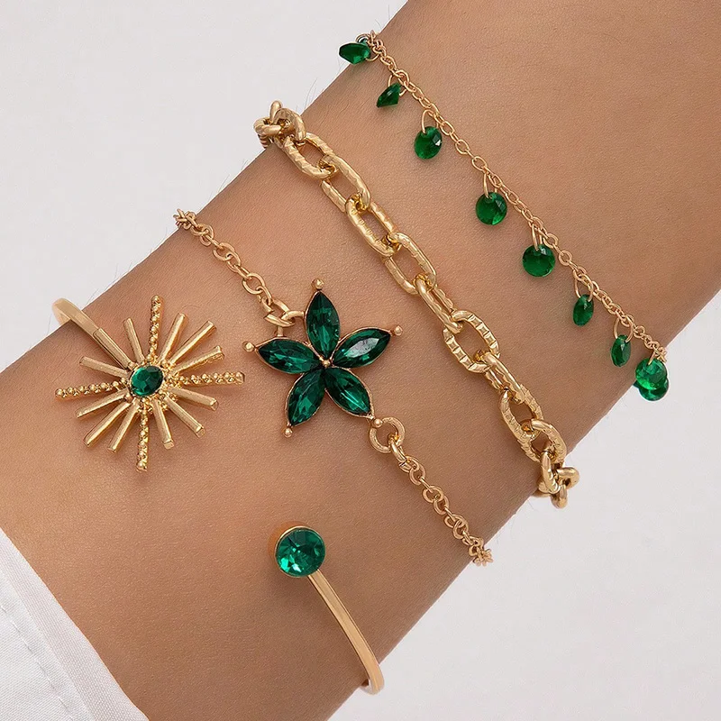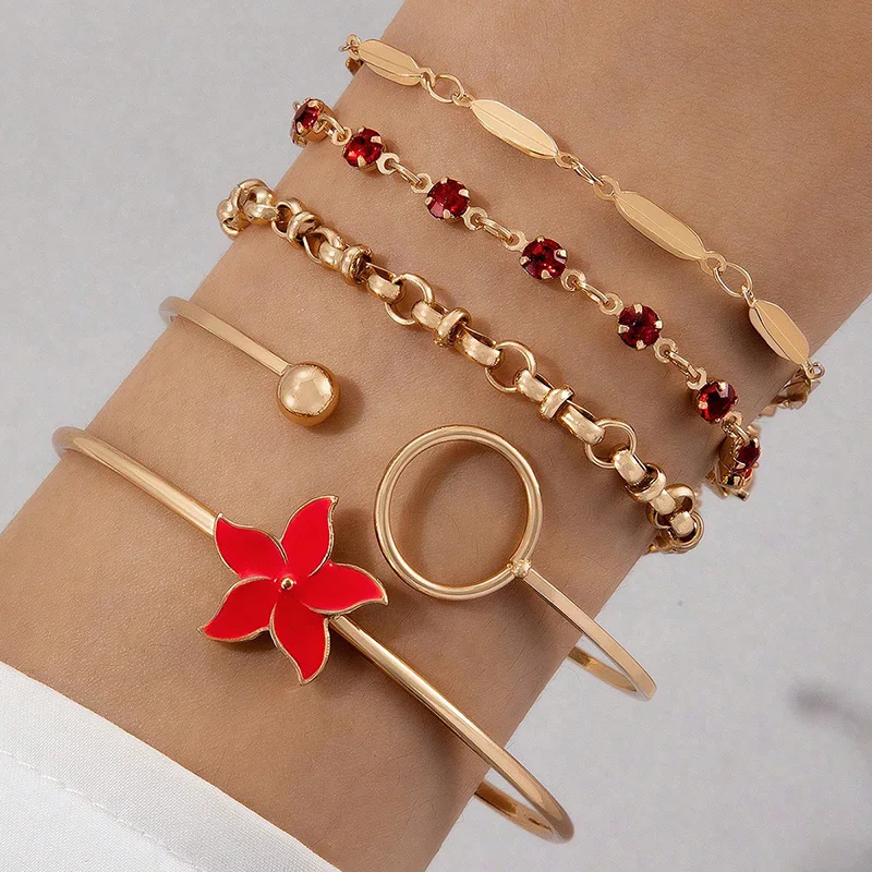 Fleepmart Charms Colorful Flower Multilayered Open Bracelet for Women Alloy Dropping Oil Beads Bangle 4pcs/Set Wedding Jewelry