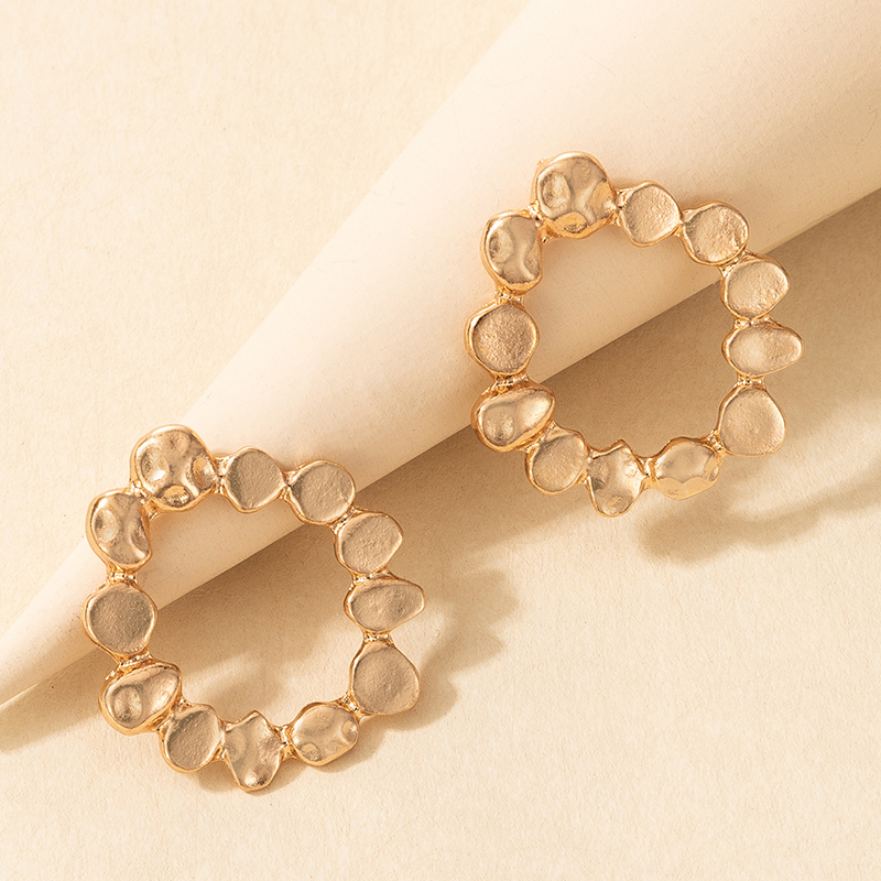 Fleepmart Charms Gold Round Drop Earrings for Women New Trendy Alloy Metal Dangle Earring Party Jewelry Accessories Gift