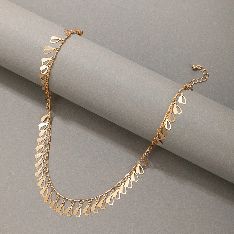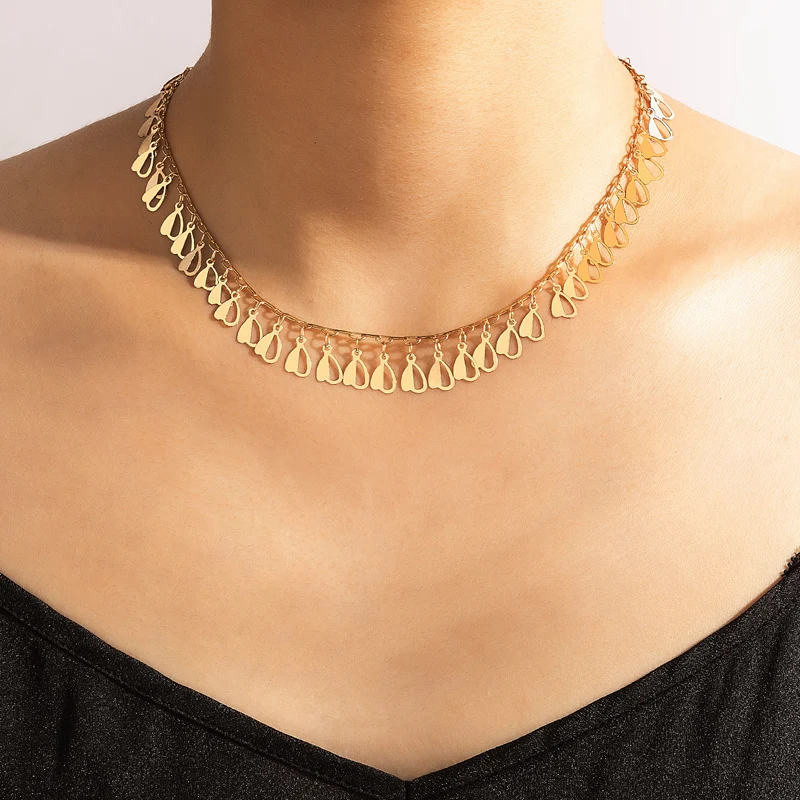 Fleepmart Charms Heart Clavicle Chain Choker Necklace for Women Gold Color Alloy Metal Tassel Party Jewelry Accessories Collar