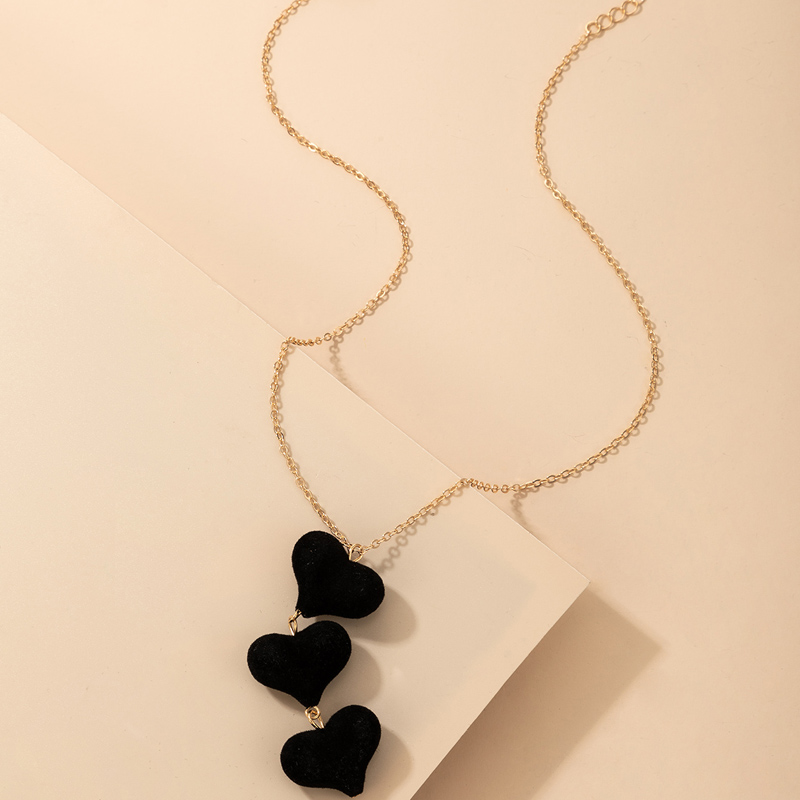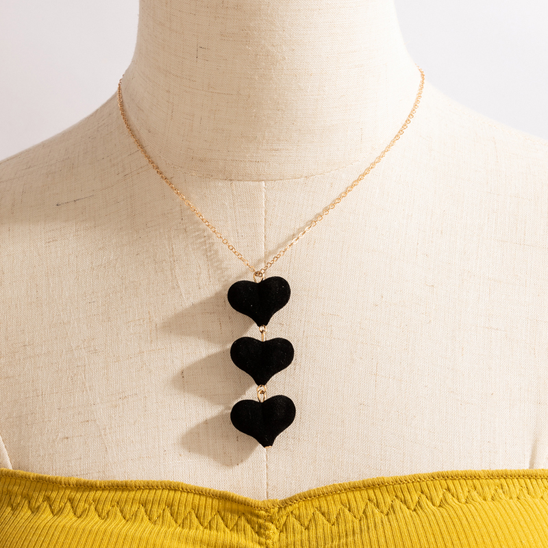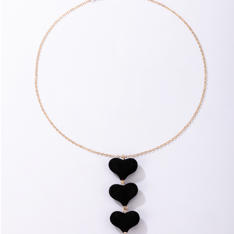 Fleepmart Charms Heart Pendant Necklace for Women Black Flannel Geometry Alloy Metal Adjustable Wedding Jewelry Collar