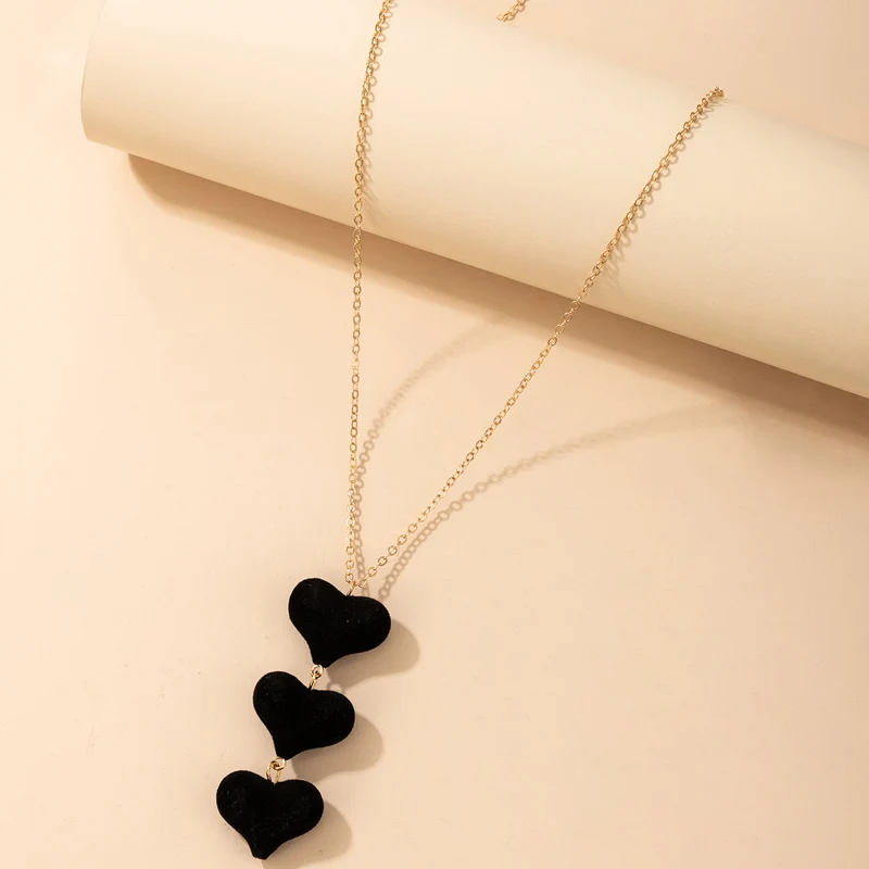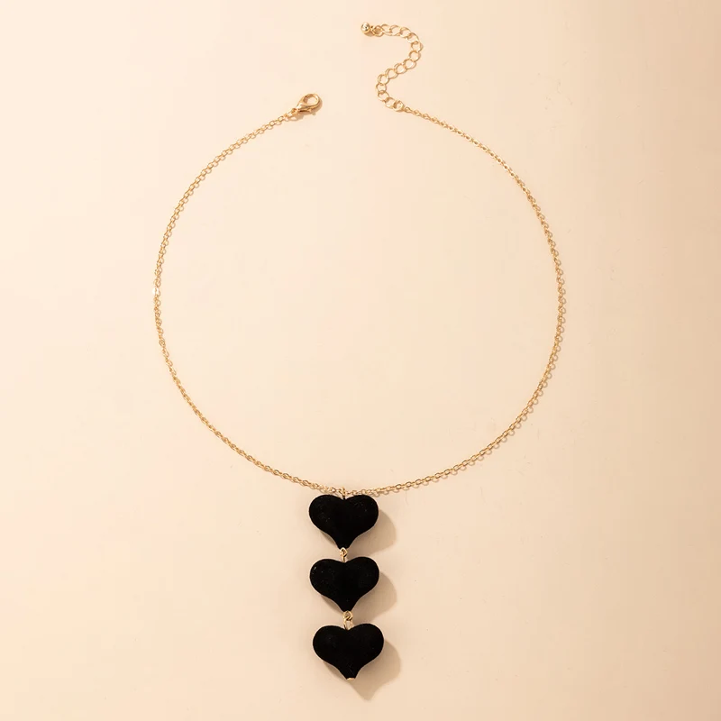 Fleepmart Charms Heart Pendant Necklace for Women Black Flannel Geometry Alloy Metal Adjustable Wedding Jewelry Collar