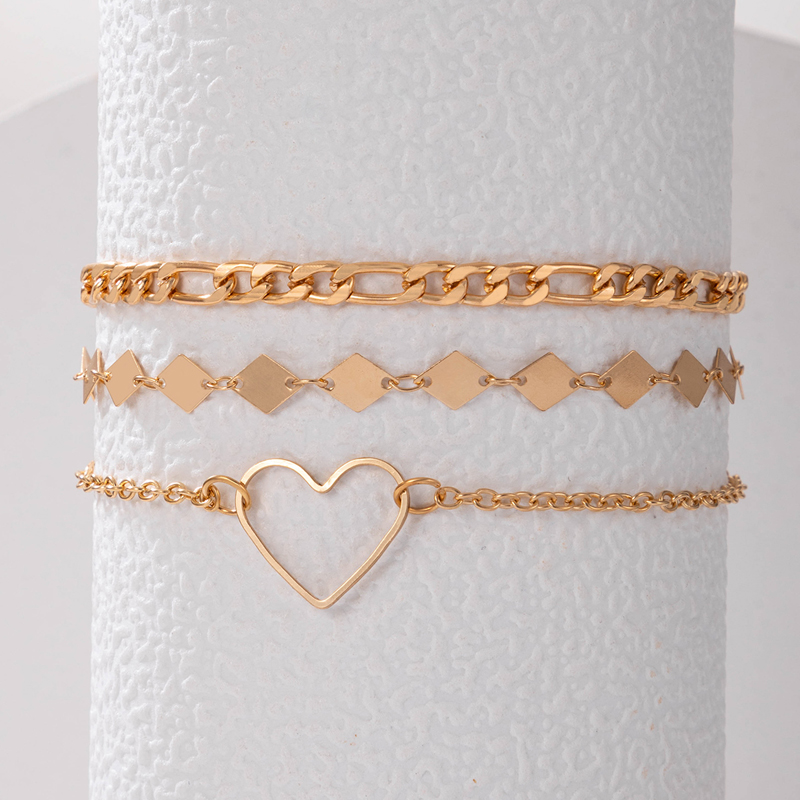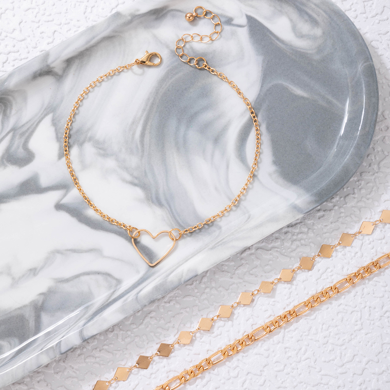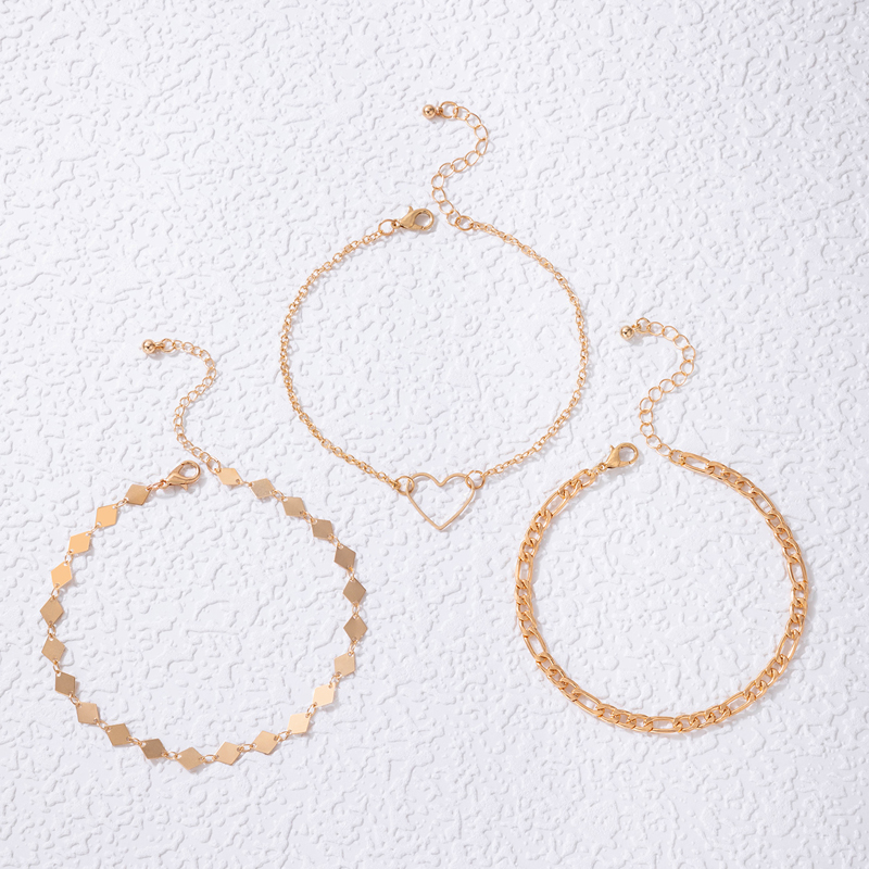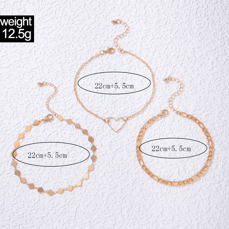 Fleepmart Charms Key Anklet Gold Wafer Shiny Rhinestone Foot Chain Adjustable Bohemian Jewelry Gift for Women Men 2pcs/sets