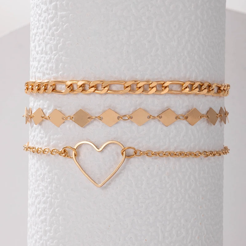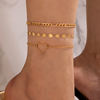 Fleepmart Charms Key Anklet Gold Wafer Shiny Rhinestone Foot Chain Adjustable Bohemian Jewelry Gift for Women Men 2pcs/sets