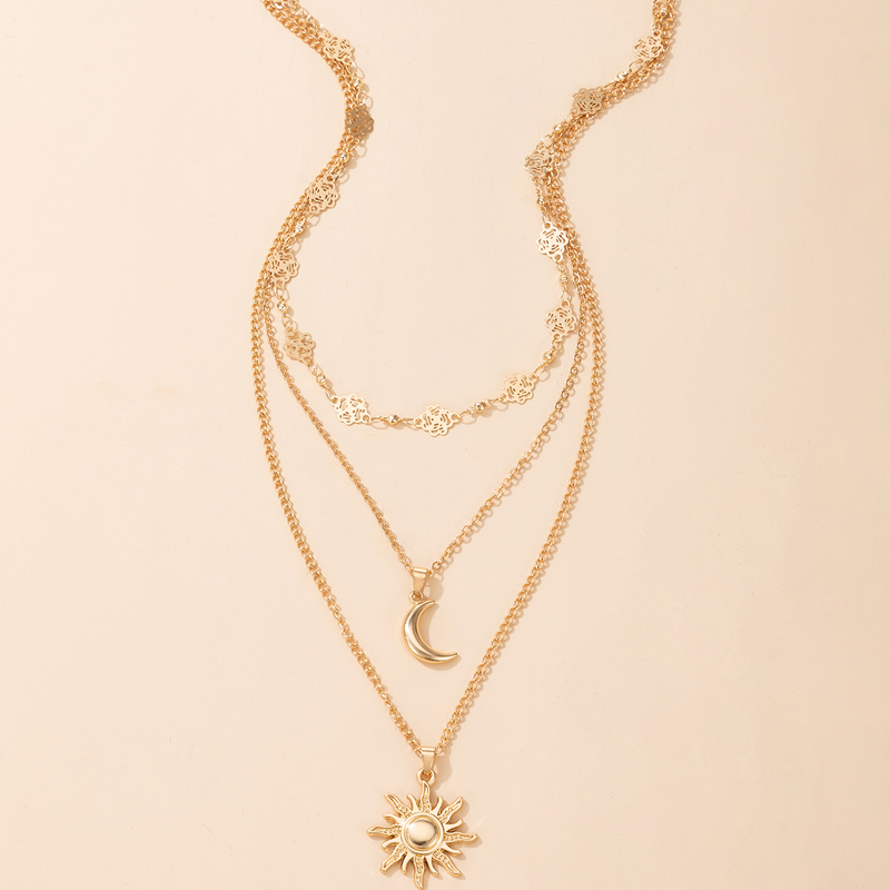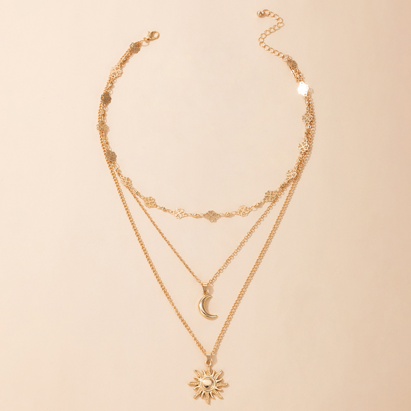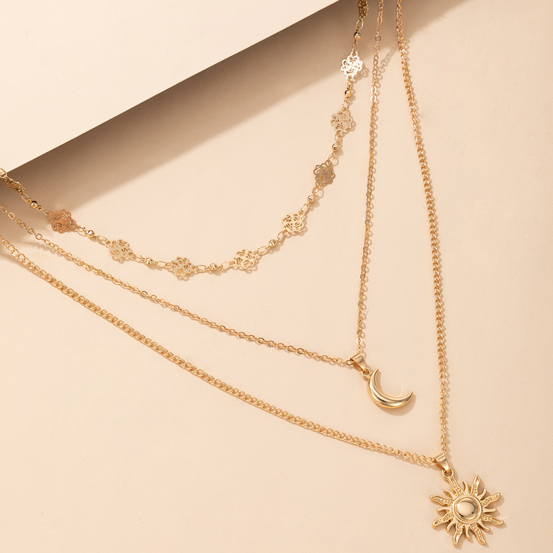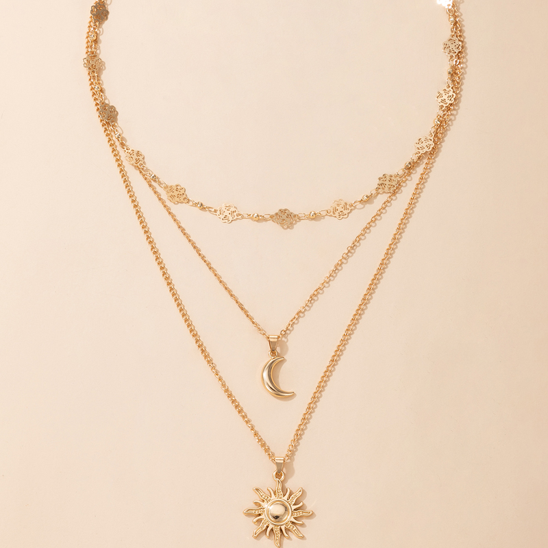 Fleepmart Charms Sun Flowers Moon Pendant Necklace for Women Gold Geometry Hollow Metal Alloy Party Jewelry Accessories
