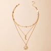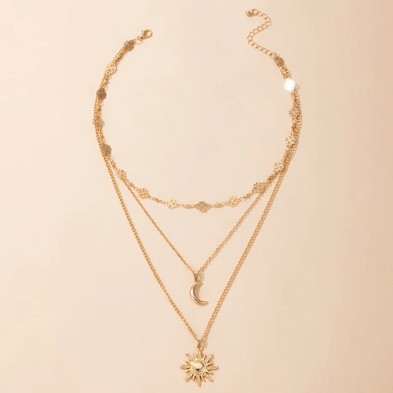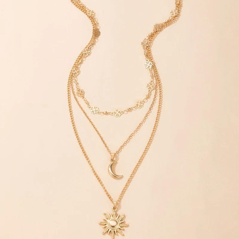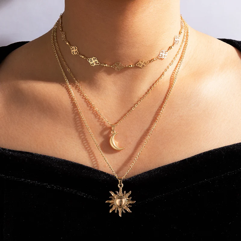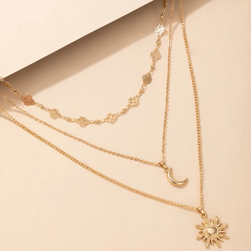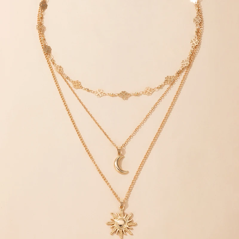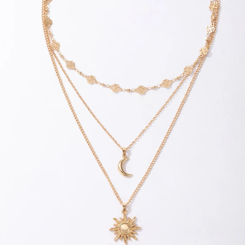Fleepmart Charms Sun Flowers Moon Pendant Necklace for Women Gold Geometry Hollow Metal Alloy Party Jewelry Accessories