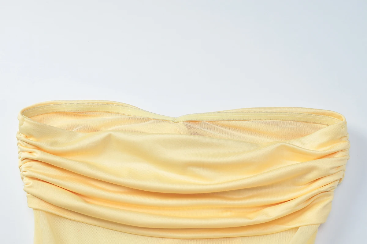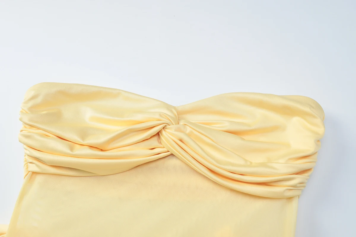 Fleepmart Chest Wrapping Backless Slim Ruched Mesh Patchwork Ribbon Mini Dress Women’S Fashion Sexy Elegant Clothes Party Clubwear