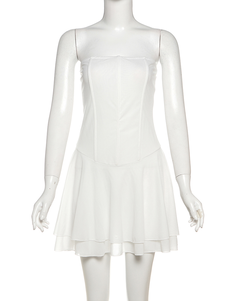 Fleepmart Chic Strapless Double-Deck Mesh Dress Women Sexy Solid Simple Elegant Stretch Skinny Clubwear Summer Fashion Mini Bodycon