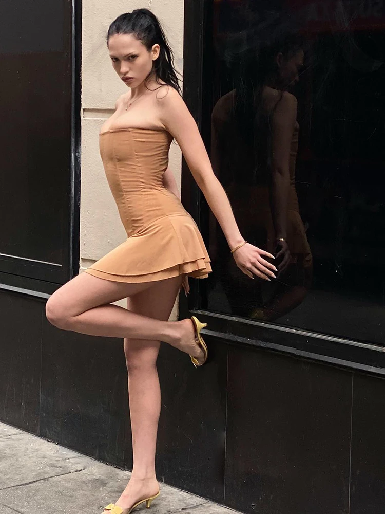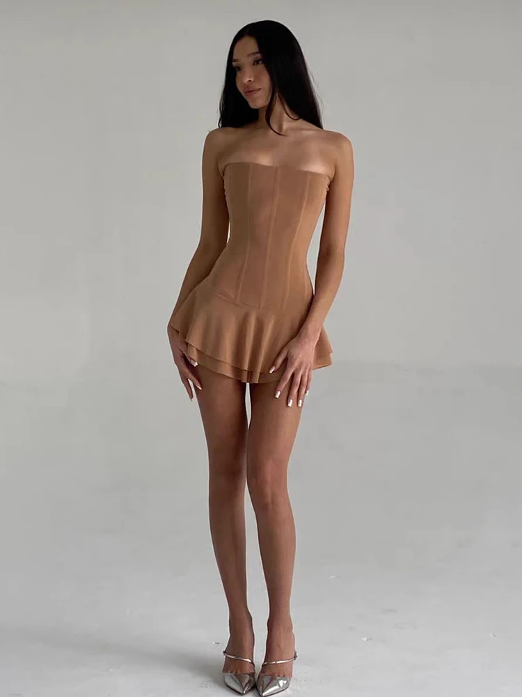 Fleepmart Chic Strapless Double-Deck Mesh Dress Women Sexy Solid Simple Elegant Stretch Skinny Clubwear Summer Fashion Mini Bodycon