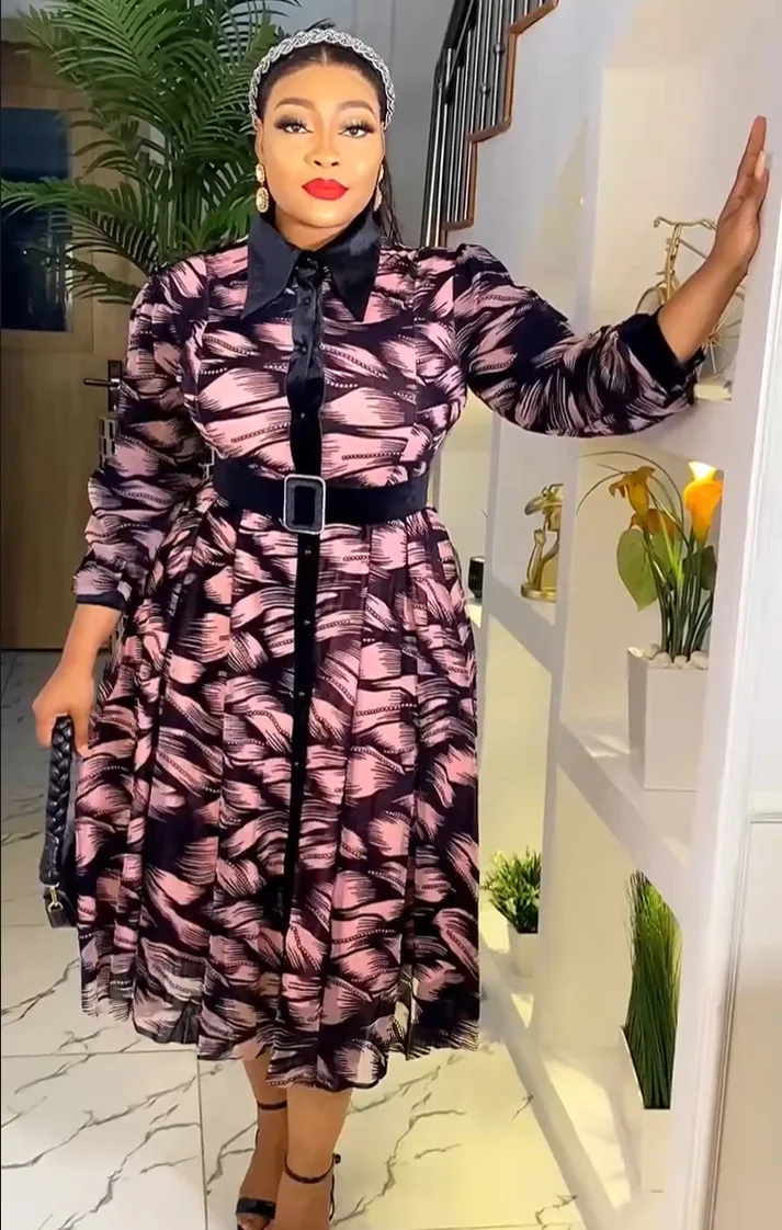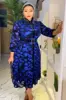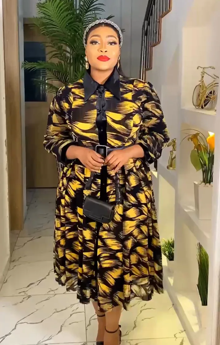 Fleepmart Chic Women Printed Office Work Dress Turn-down Collar Long Sleeve Chiffon Elegant Mid Clothing Wth Waist Belt Fall Loose Wear