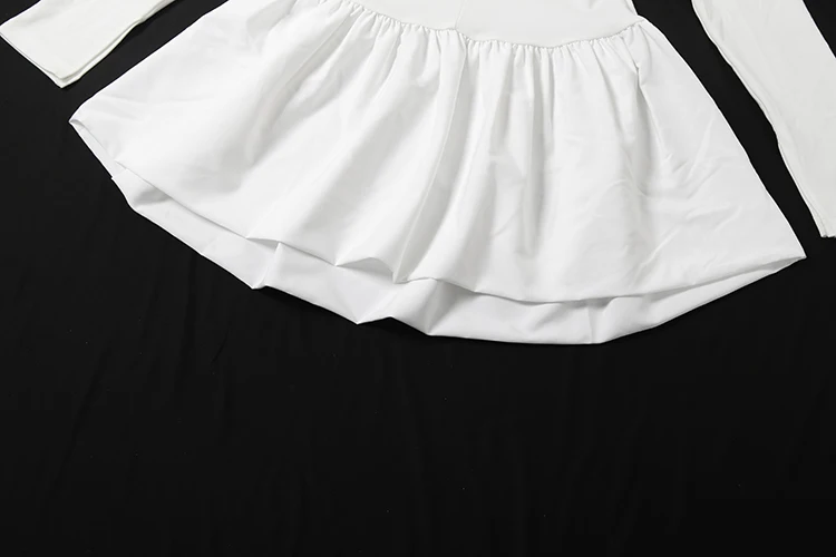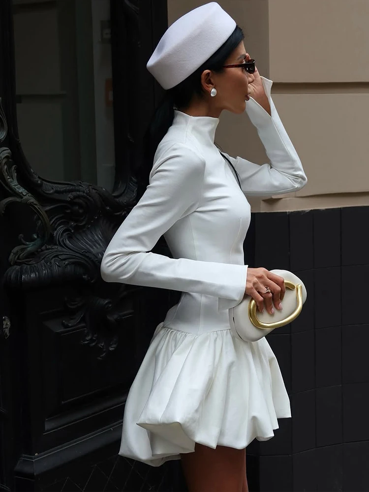 Fleepmart Classic Bubbles Hem Dress Women Turtleneck Simple Full Sleeve Solid Full Stretch Elegant Birthday Party Mini Bodycon