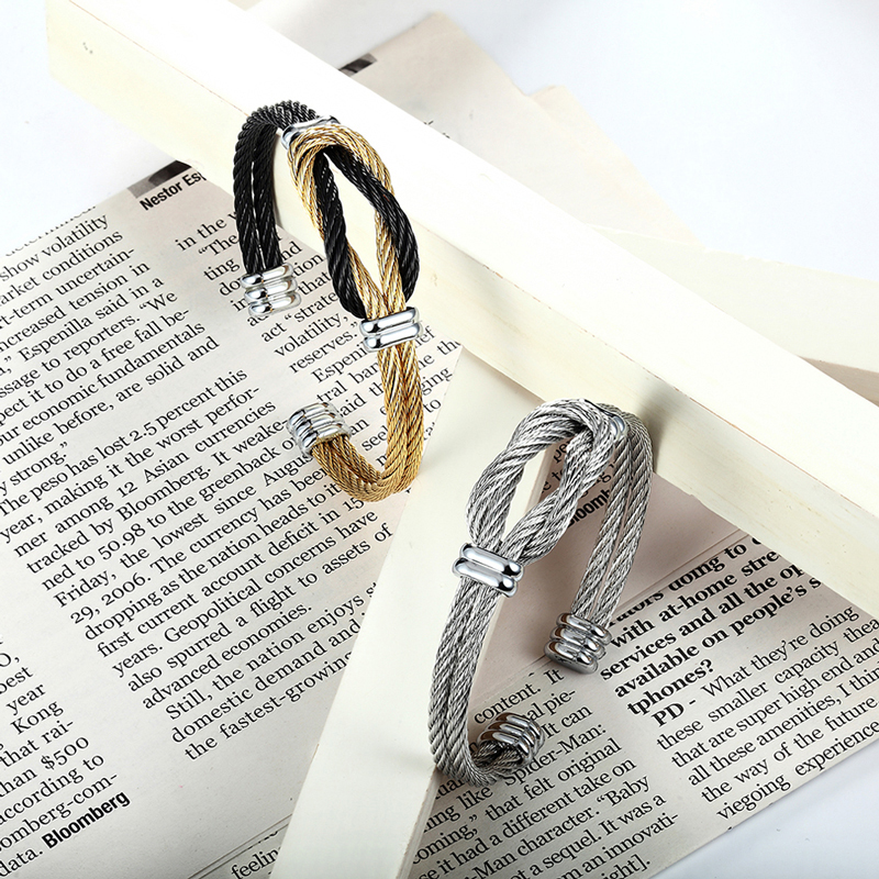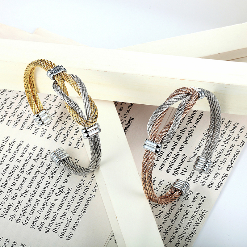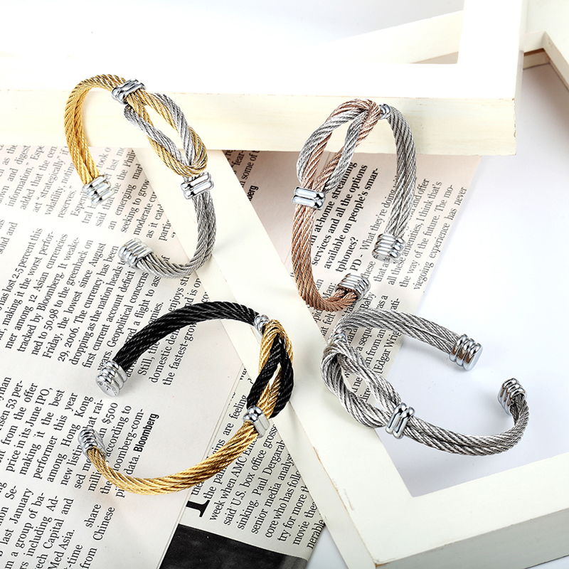 Fleepmart Classic Design Stainless Steel Stripe Wire Adjustable Size Cuff Bracelet & Bangle 4 Colors Bracelet For Women Jewelry Gift