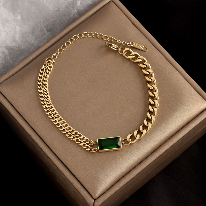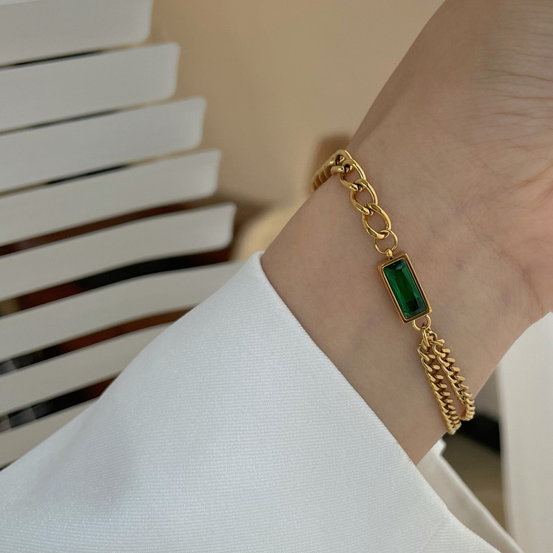 Fleepmart Classic Geometric Rectangle Green Crystal Stainless Steel Chain Adjustable Bracelets For Woman Wedding Party Jewelry Girl Gift