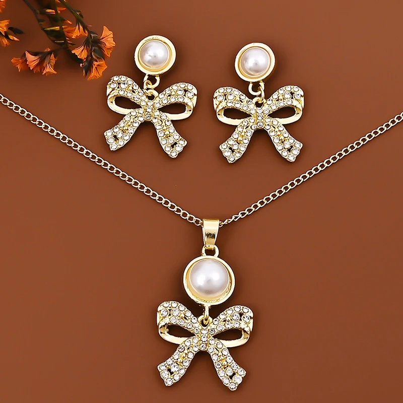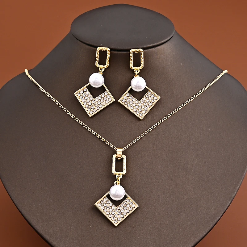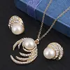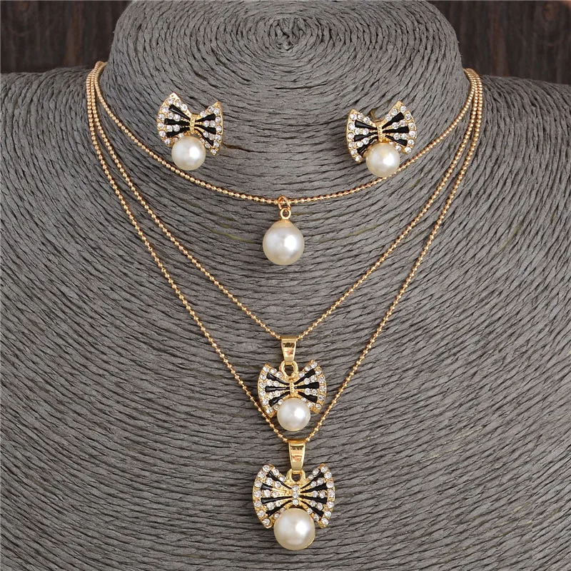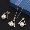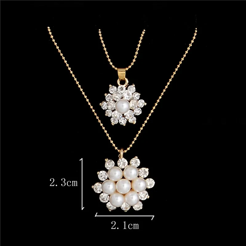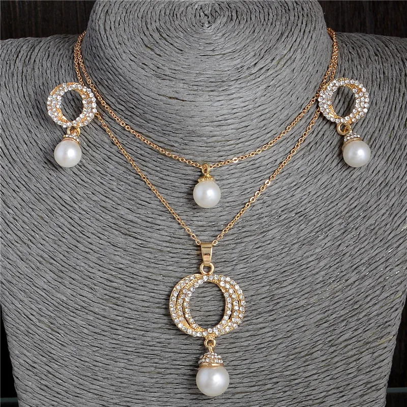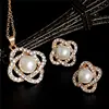 Fleepmart Classic Imitation Pearl necklace Gold Color jewelry set for women Clear Crystal Elegant Party Fashion Costume Christmas Gift