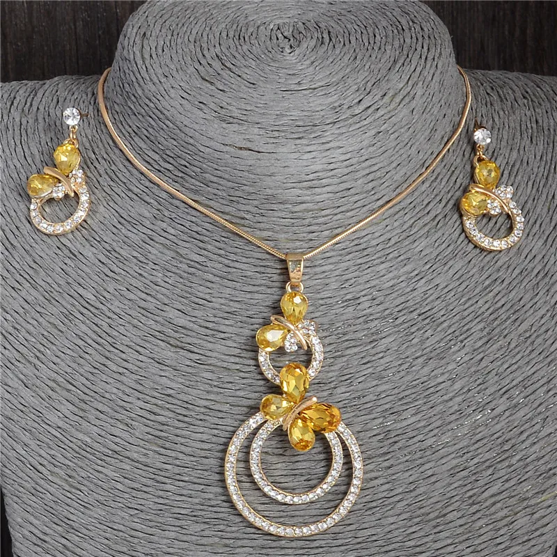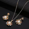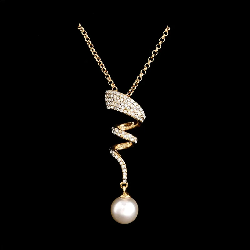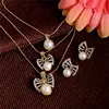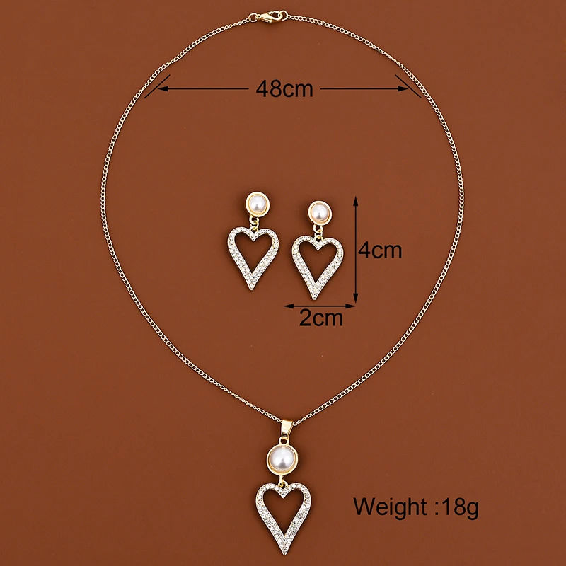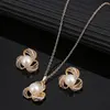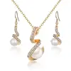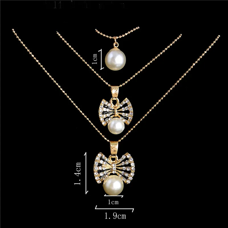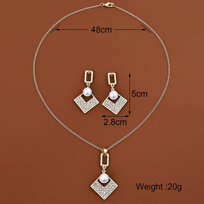 Fleepmart Classic Imitation Pearl necklace Gold Color jewelry set for women Clear Crystal Elegant Party Fashion Costume Christmas Gift