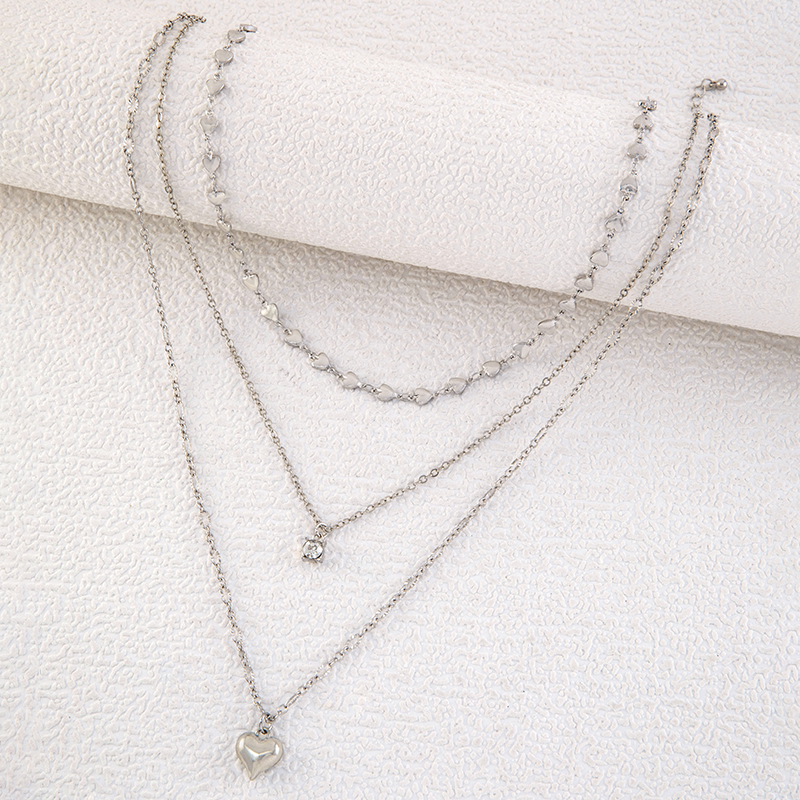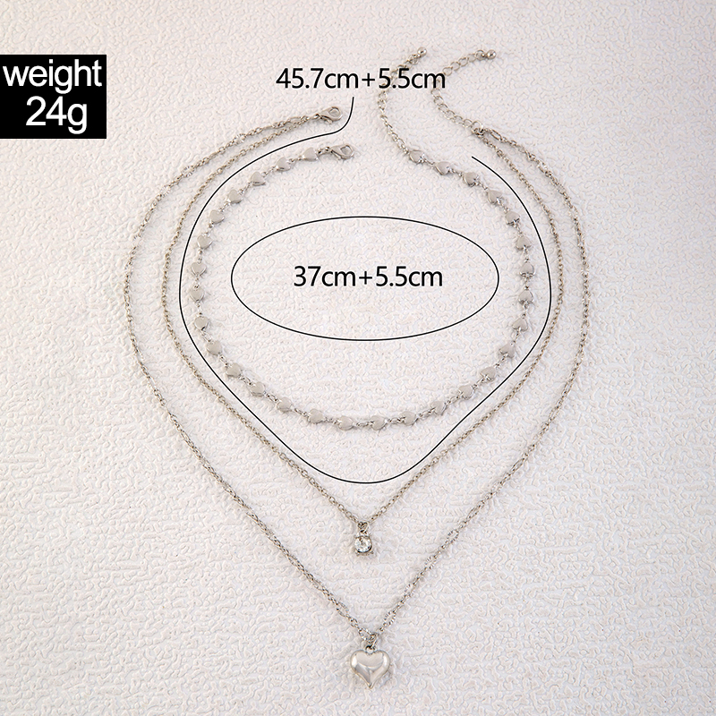 Fleepmart Classic Romantic Heart Layered Pendant Necklace for Women Crystal Stone Alloy Metal Ajustable Jewelry Gift Collar