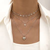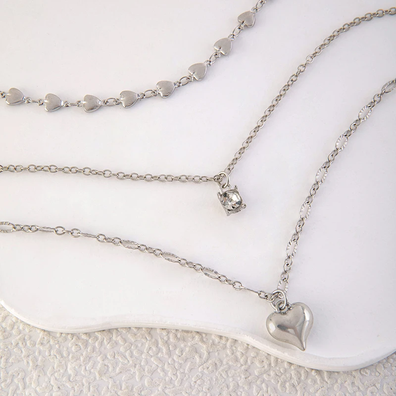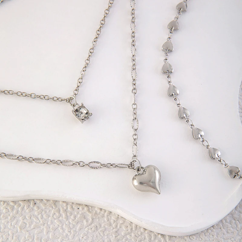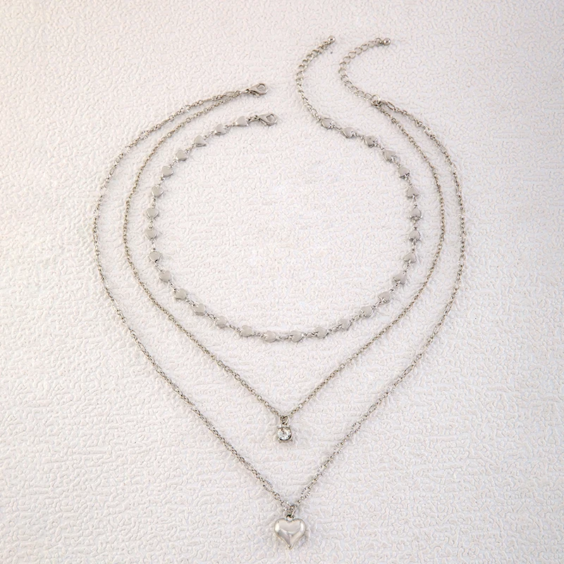 Fleepmart Classic Romantic Heart Layered Pendant Necklace for Women Crystal Stone Alloy Metal Ajustable Jewelry Gift Collar