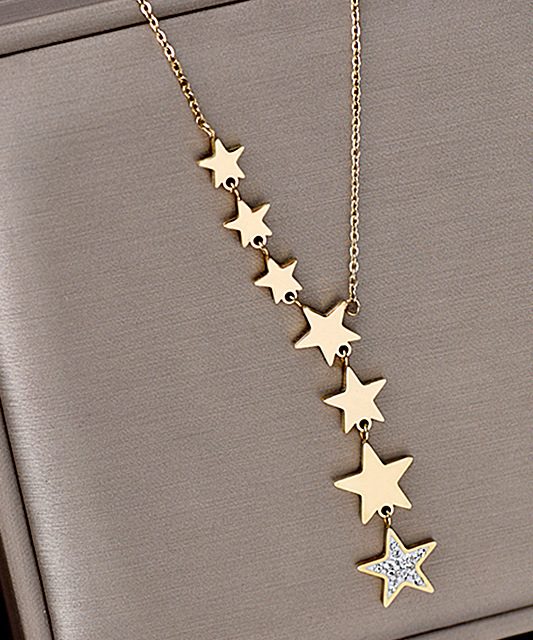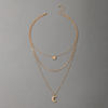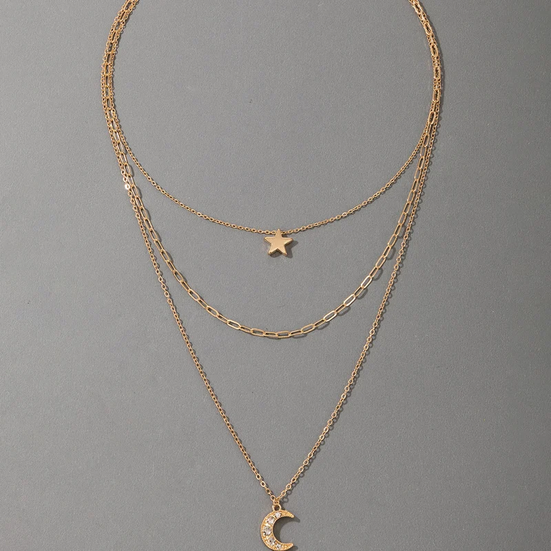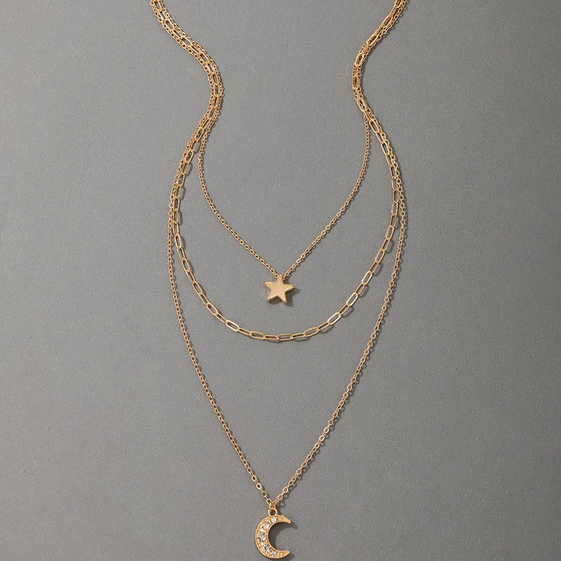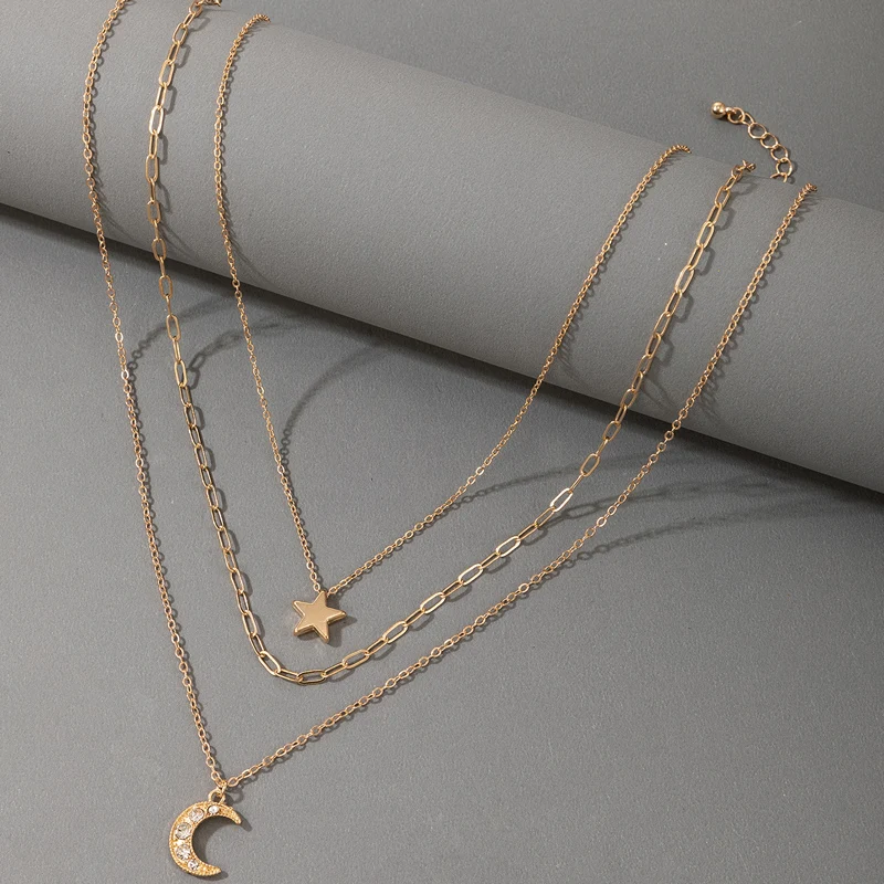 Fleepmart Classical Crystal Star Moon Pendant Necklace for Women Gold Multi-layer Cuban Chain Female Wedding Jewelry Collar
