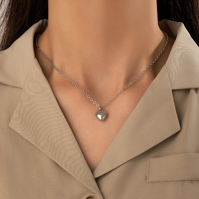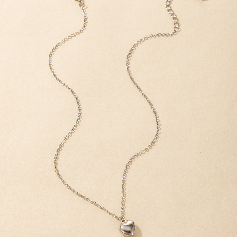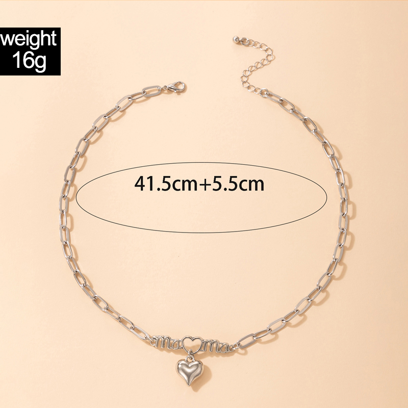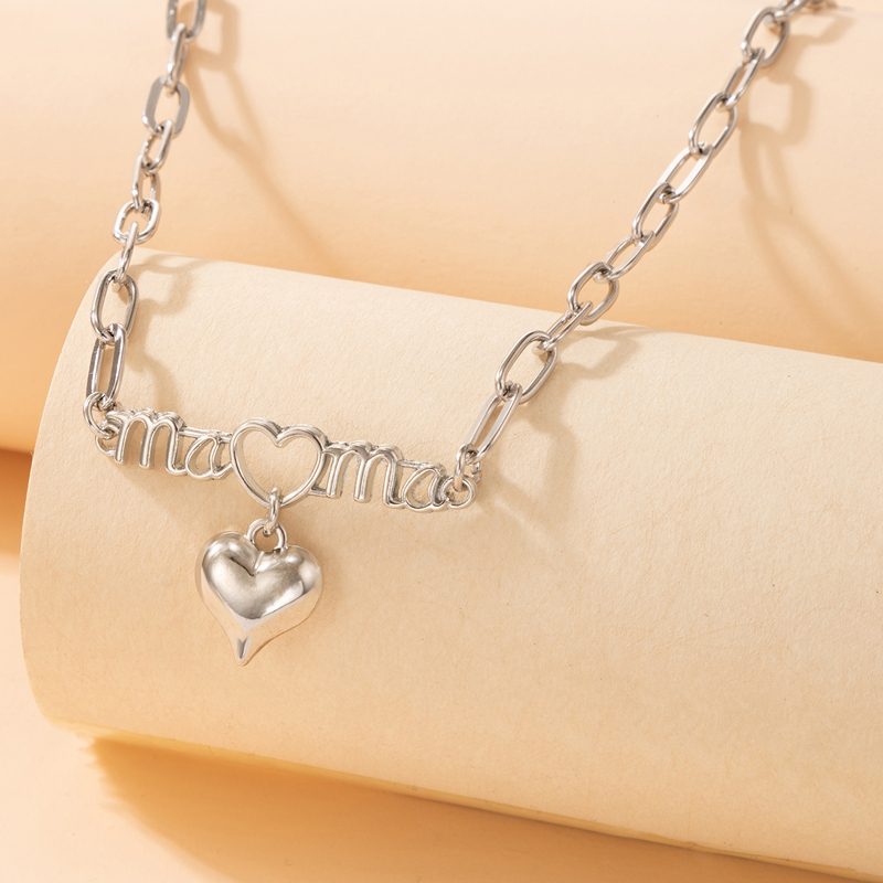 Fleepmart Classical Heart Pendant Necklace for Women Mom New Elegant Silver Color Alloy Metal Adjustable Jewelry Collar