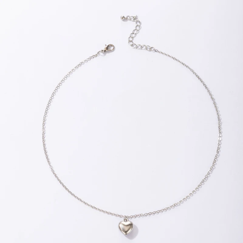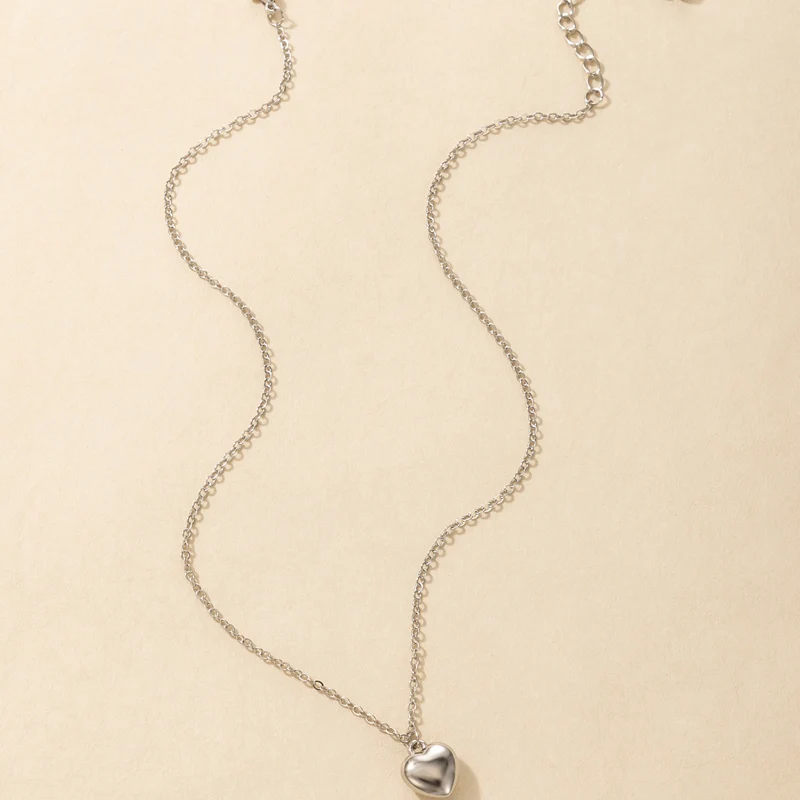 Fleepmart Classical Heart Pendant Necklace for Women Mom New Elegant Silver Color Alloy Metal Adjustable Jewelry Collar
