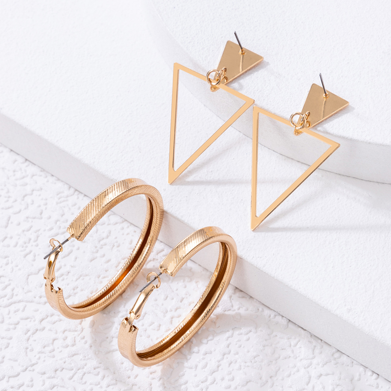 Fleepmart Classical Round Drop Earrings Charms Hollow Geoemtry Alloy Metal Dangle Earring Jewelry Set 4pcs/sets Accessories