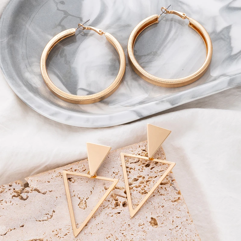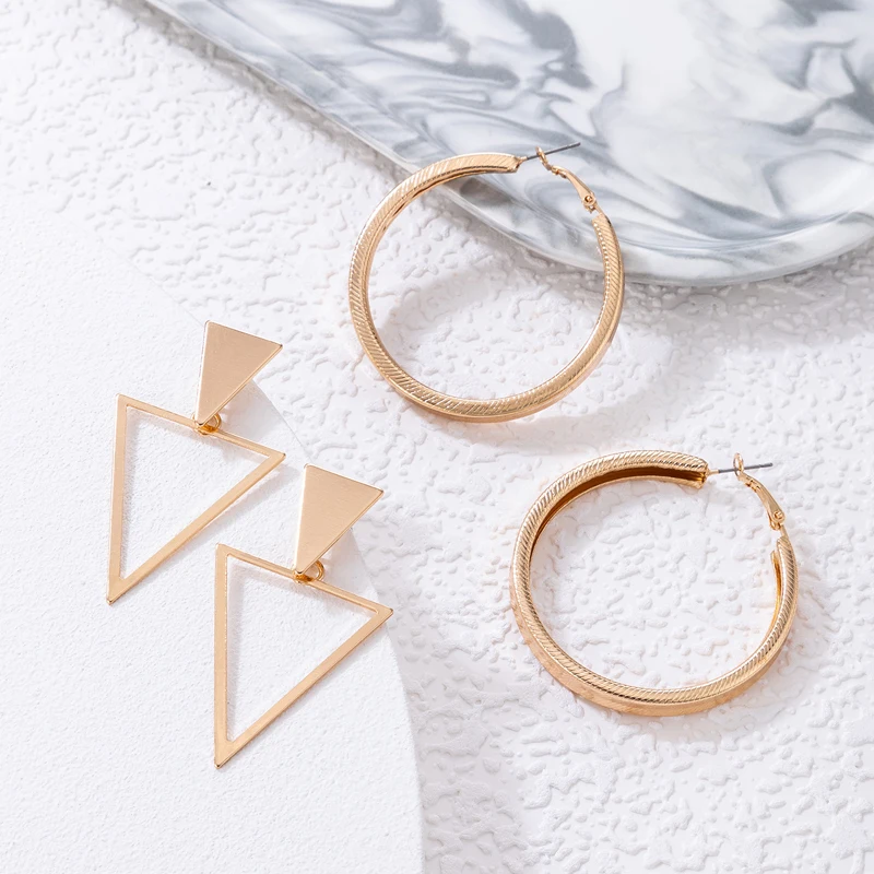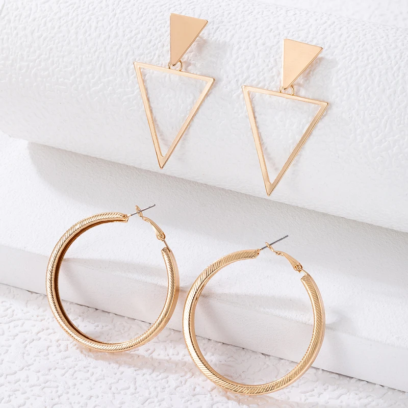 Fleepmart Classical Round Drop Earrings Charms Hollow Geoemtry Alloy Metal Dangle Earring Jewelry Set 4pcs/sets Accessories