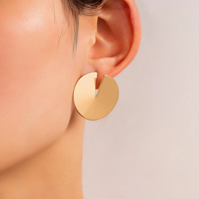 Fleepmart Classical Round Stud Earrings for Women Charms Gold Silver Color Alloy Metal Exquisite Small Party Jewelry сережки