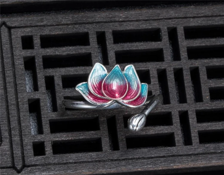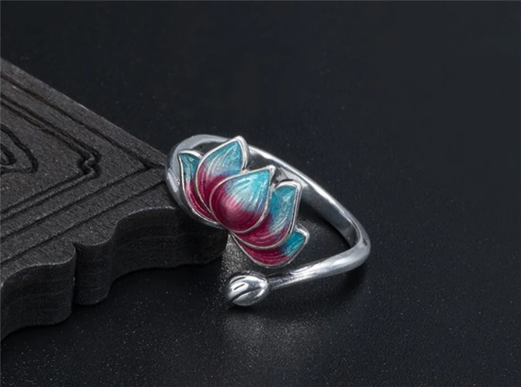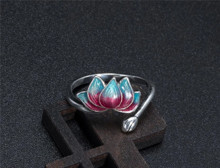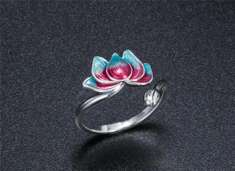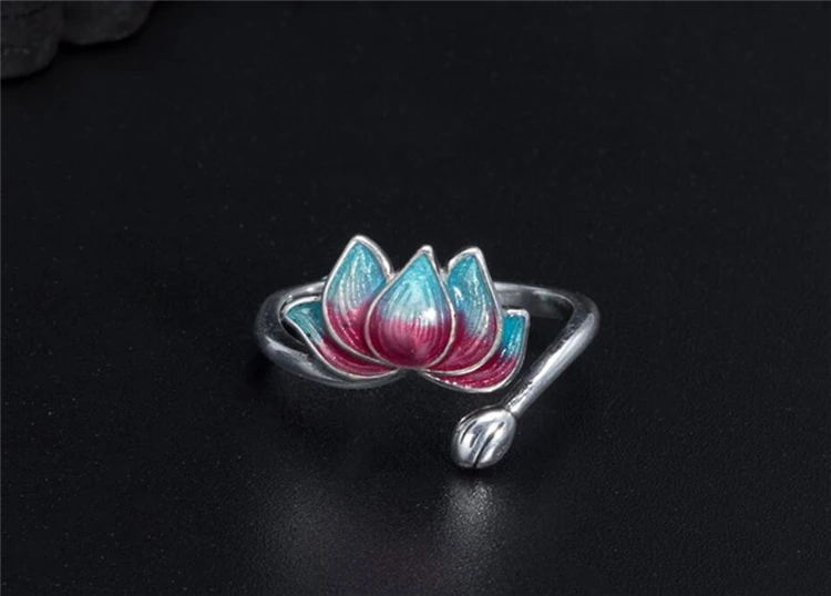 Fleepmart Color Drip Glaze Lotus Creativity Cool 925 Sterling Silver Female Resizable Opening Rings