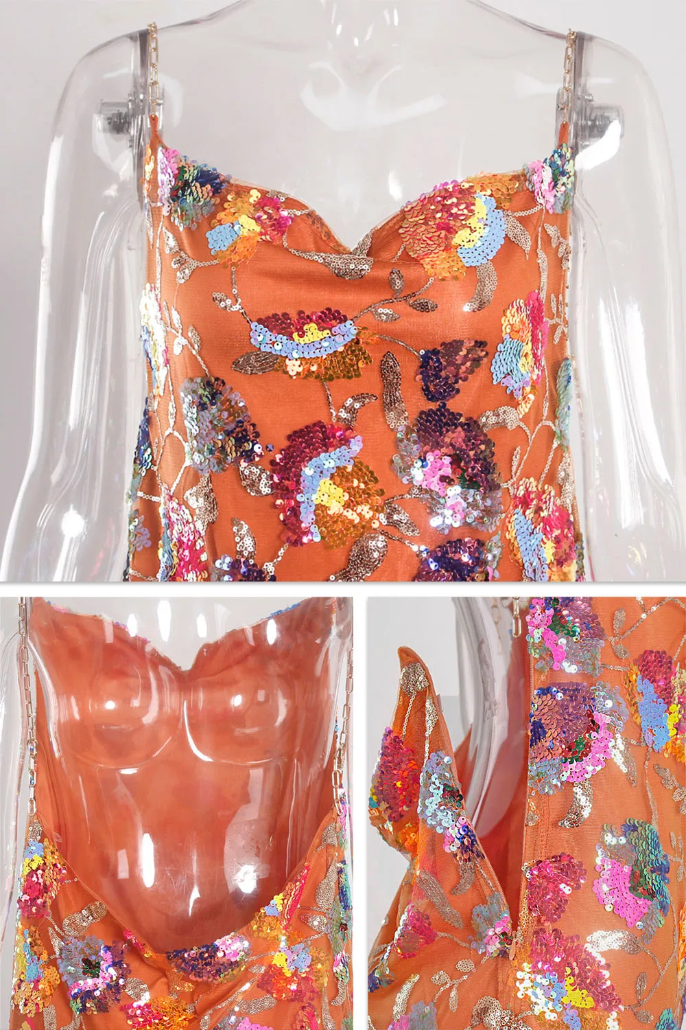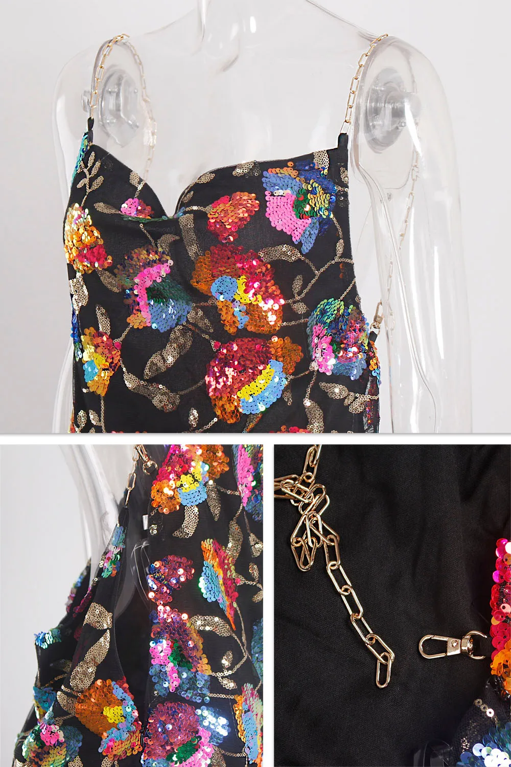 Tulle,Sequin, Chain Straps, Slip,Low cut