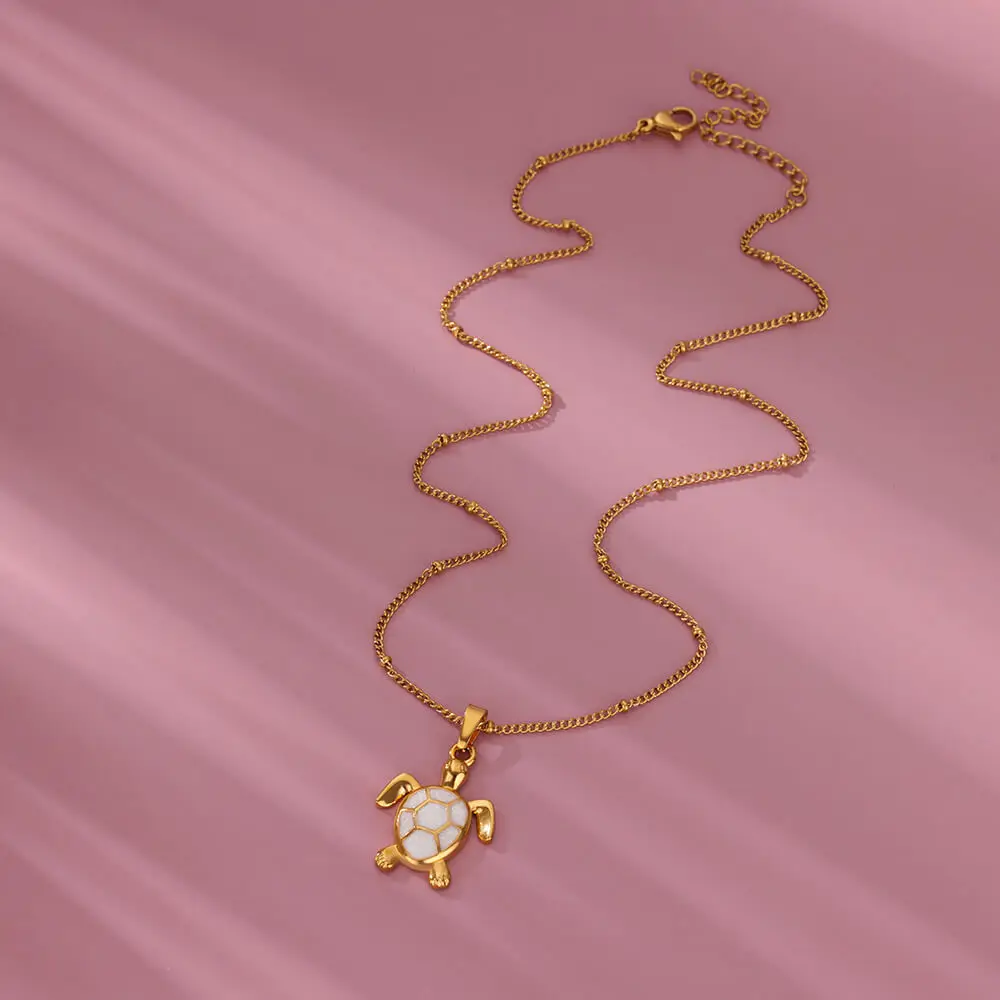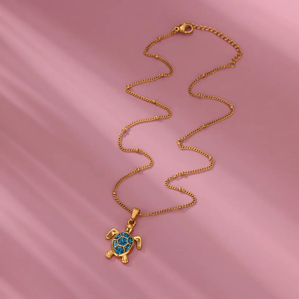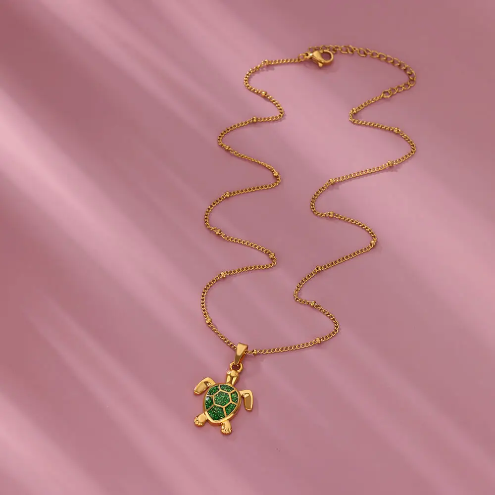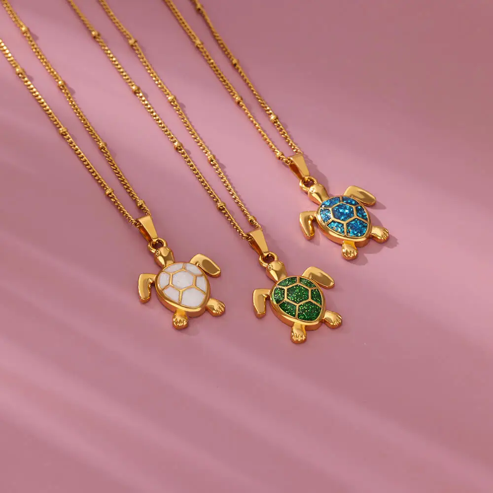 Fleepmart Colored Turtle Pendant Necklace for Women Summer Beach Female Charm Necklace Beads Chain Cute Stainless Steel Jewelry collar